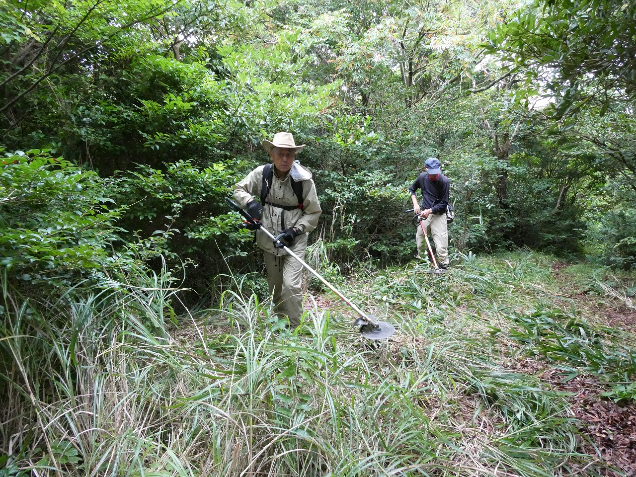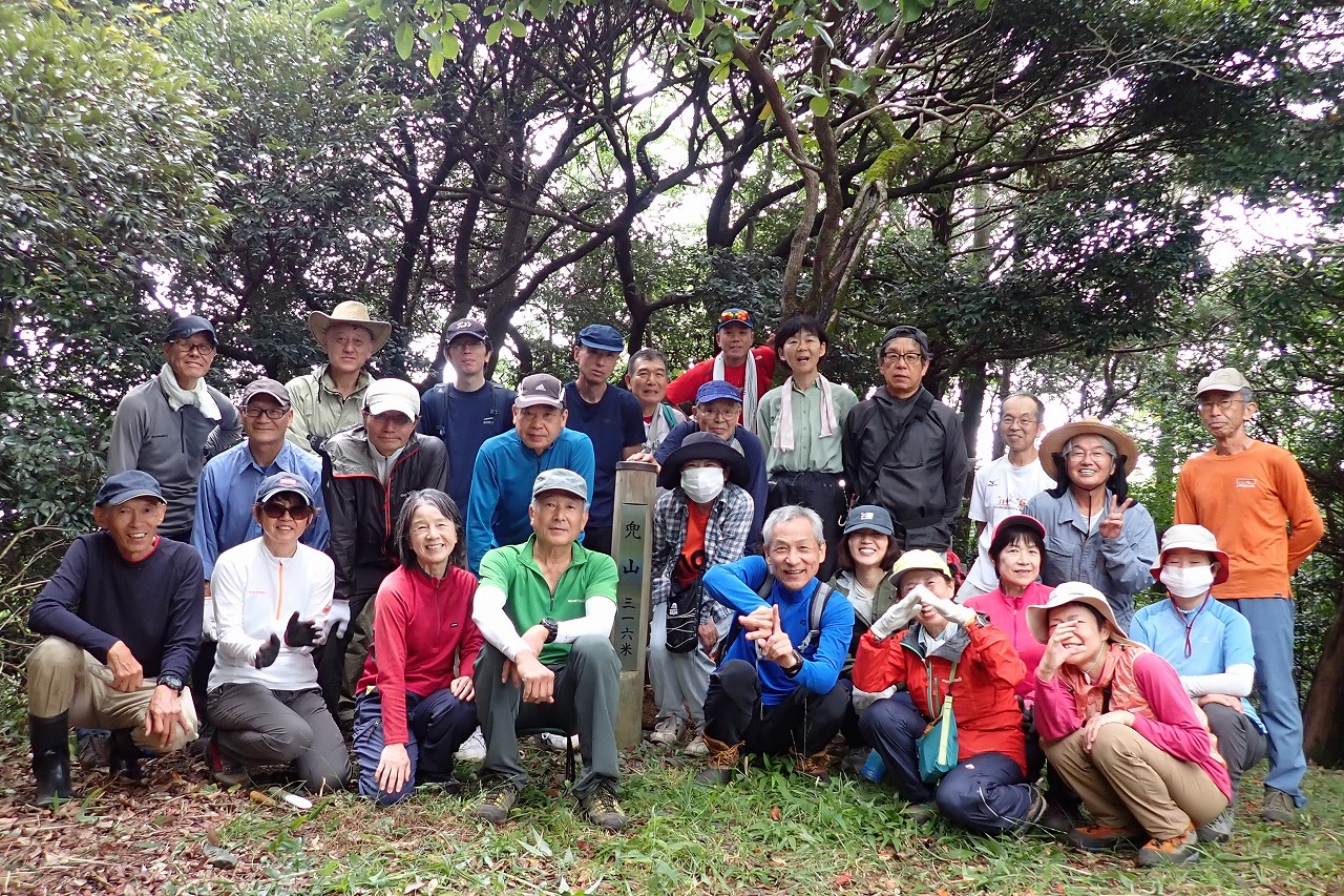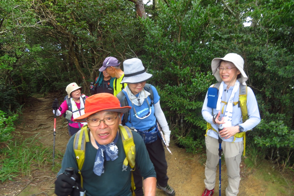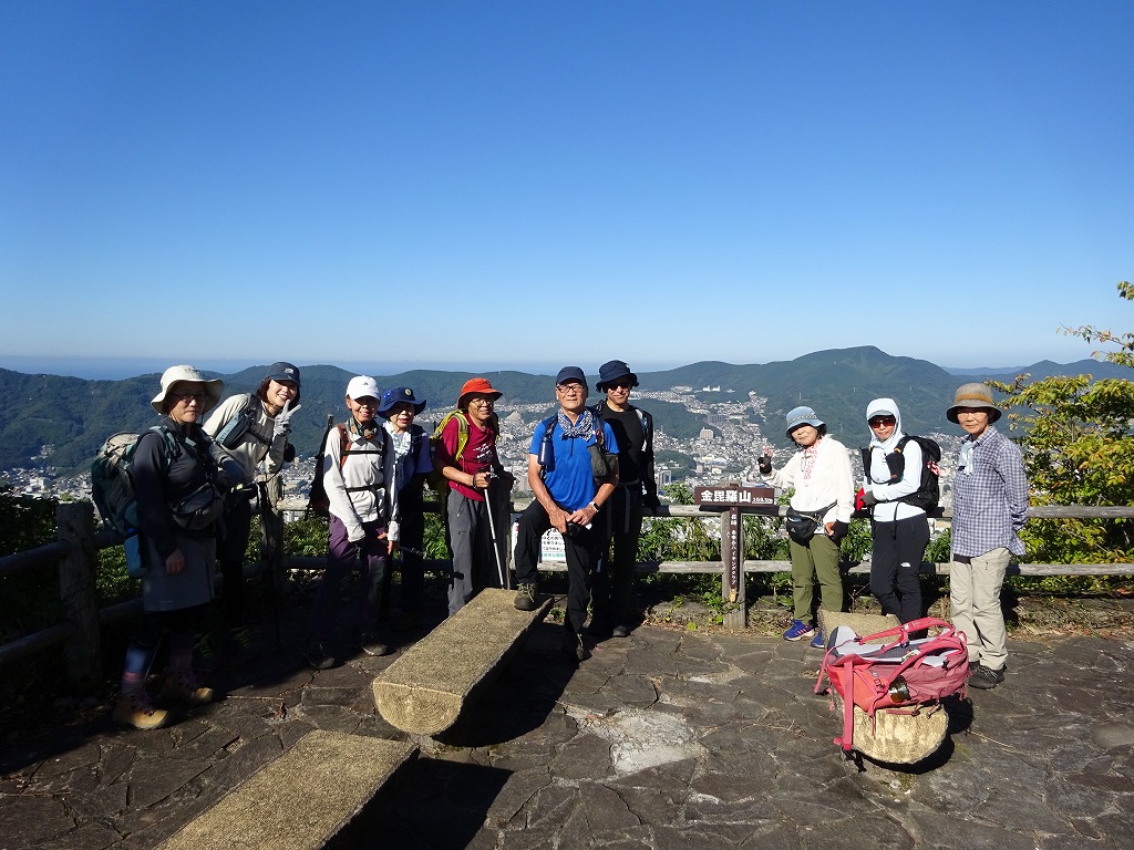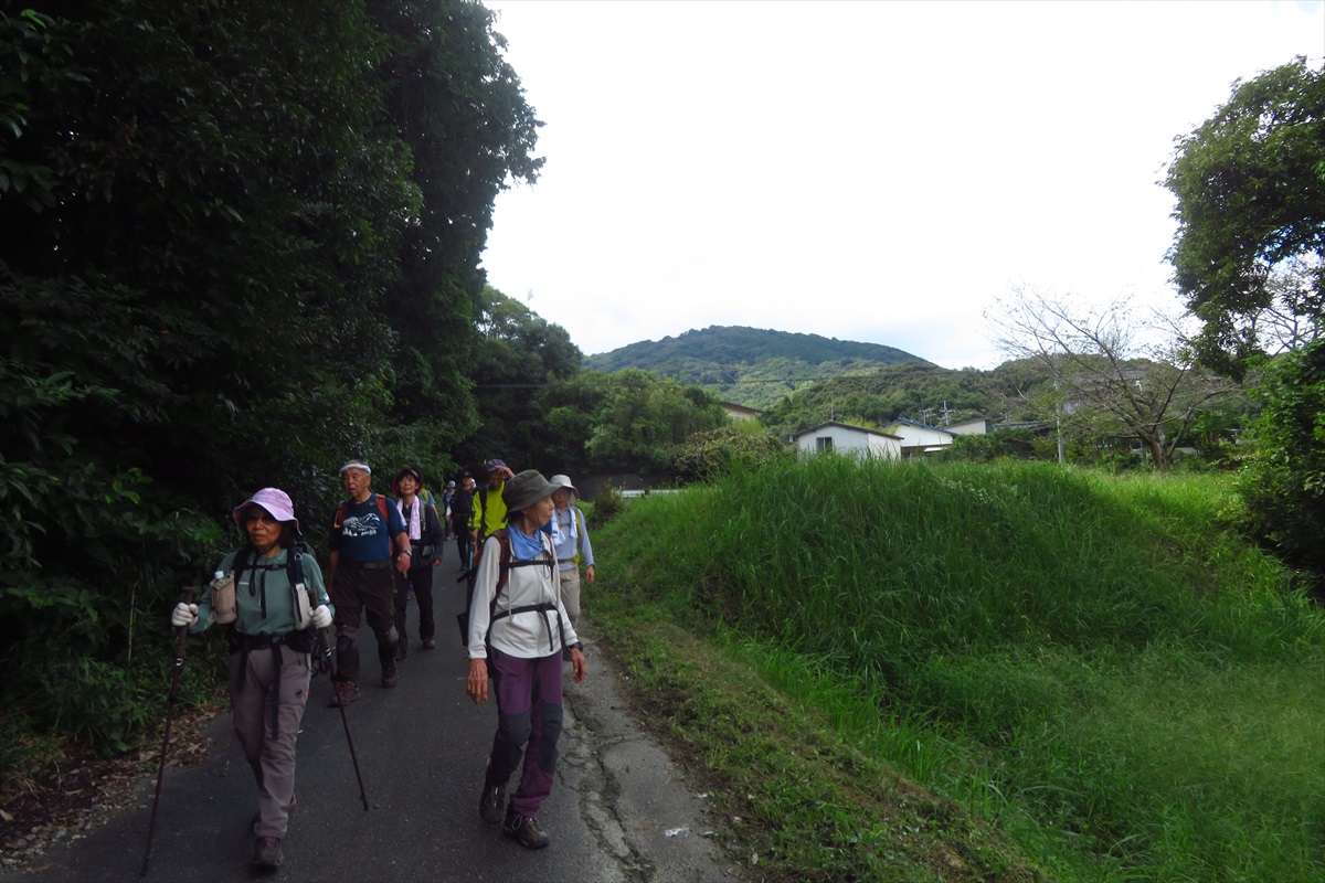 10.秋葉山(秋葉権現神社)までの道は迷い易かったが、それに追い打ちをかけるように、途中リーダーの足元に一匹のスズメバチが・・・、左の方へ移動してまたも道なき道を、どうにか妙相寺方面を目指し無事着、よしよし11名そろっている、あれっ、撮っているのは私だが・・・ 11.さて.秋葉山を下り妙相持から本河内水源池〜国道〜豊前坊、英彦山を目指しましょう 12.大丈夫?疲れた〜〜 13.国道34号線沿いの「豊前坊英彦山への道」の看板から石段を登り、猪柵を越えて登山口へ、なにやら作戦会議中・・・ん〜ん〜気になる 14. 下虚空蔵堂を見ようと左折するも、大きな蛇の抜け殻が足元に、急遽戻り何事もなかったかのように右折、急な石段を登り豊前坊(飯盛神社)へ、万病に効くハマグリ石の前で、9名か、11―2−私1=9あれっ? 15. 6番目の英彦山401m、やはり9名、もう数の違いにも驚かない 16. 残る愛宕山へ、登山口はどこだ 17. 足に来て立ってられないのかな?愛宕神社、あとは諏訪神社まで下るだけですよ 18.戻ってきました諏訪神社8時間30分お疲れさまでした 暑い中の15.5km、累積標高1,320m本当にお疲れさまでした、また疲れた後の運転、誠にありがとうございました。次回は市民の森で泊まりますか?