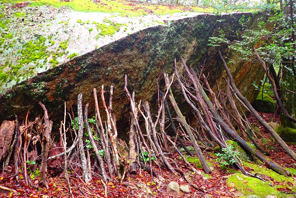13.国道34号線沿いの「豊前坊英彦山への道」の看板から石段を登り、猪柵を越えて登山口へ、なにやら作戦会議中・・・ん〜ん〜気になる