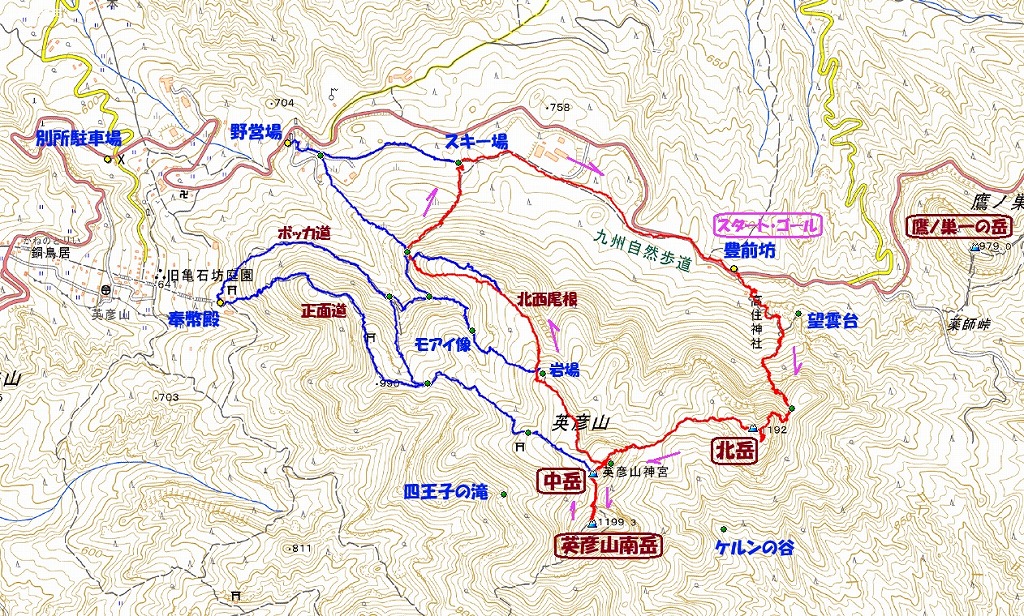 12月に英彦山登山道の規制が解除され 久しぶりに「豊前坊〜北岳〜中岳〜南岳〜北西尾根〜スキー場〜豊前坊」と周回しました。