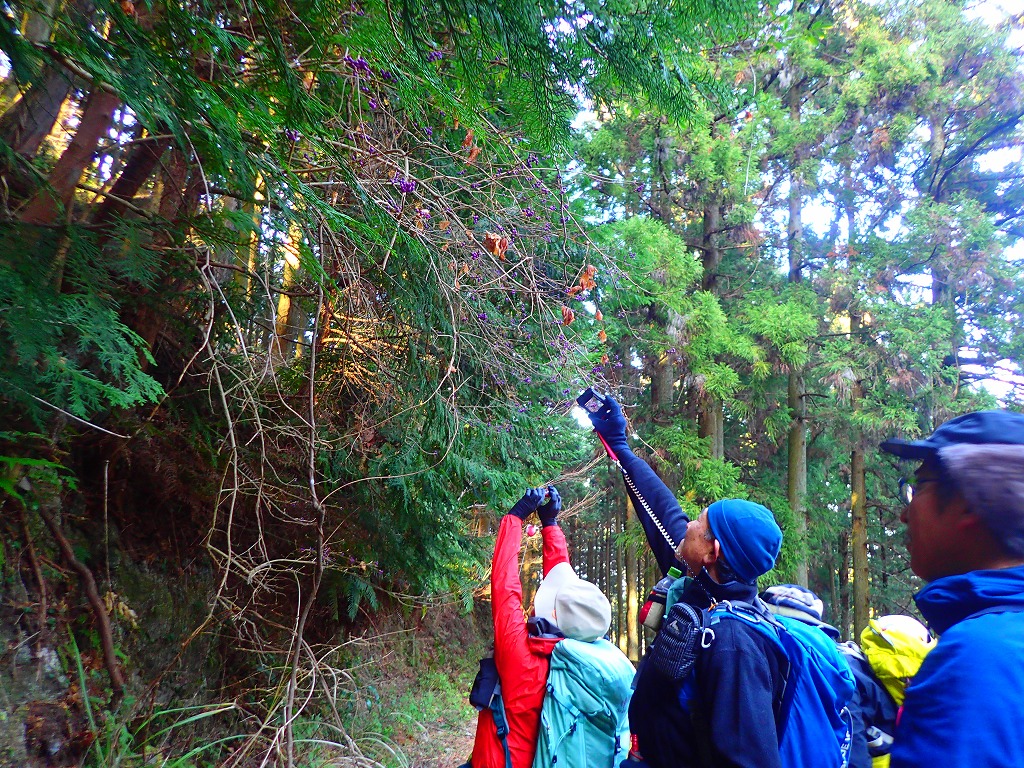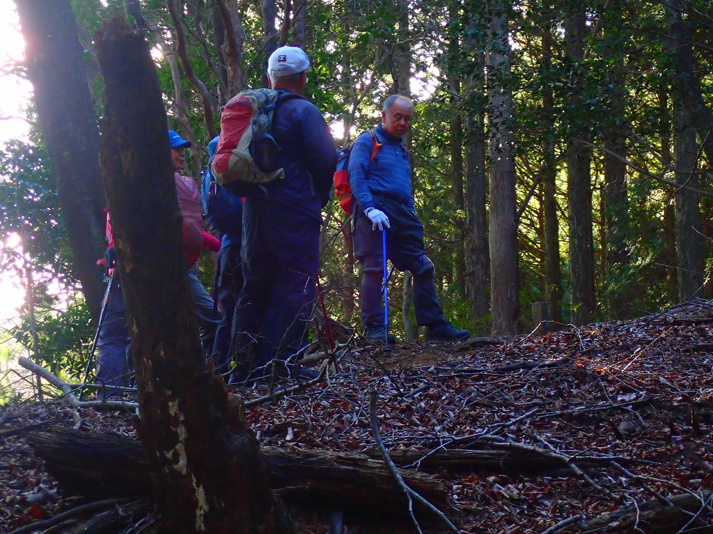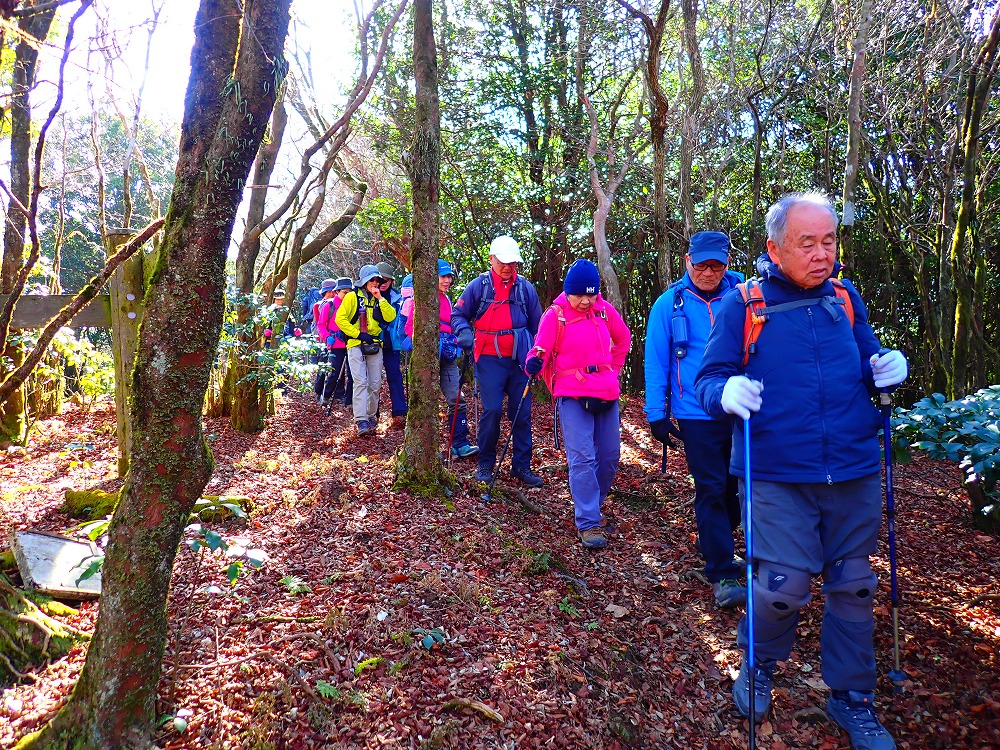 12月21日(日)大分県津久見市の彦岳に登ってきました。高速道路に乗っての移動中は小雨が降っていて天気を少し心配したのですが、登山口(林道出会い)に着く頃には雨は止んでかっぱを着ずに歩けました。途中の展望所からは海まで望むことができましたが、山頂に近くになると霧が出始めて展望はありませんでした。下山時は風が吹き上げてきて体感温度がかなり下がったので、この時期の衣服調整は大切だと改めて感じました。昼食は佐伯の錦寿司へ行きゆっくりと美味しい握り寿司をいただきました。さらに移動して臼杵の温泉でつるつるの湯にのんびり浸って心身を癒しました。大人の遠足のような楽しい一日でした。長距離の運転をして下さったドライバーの方々、ありがとうございました。