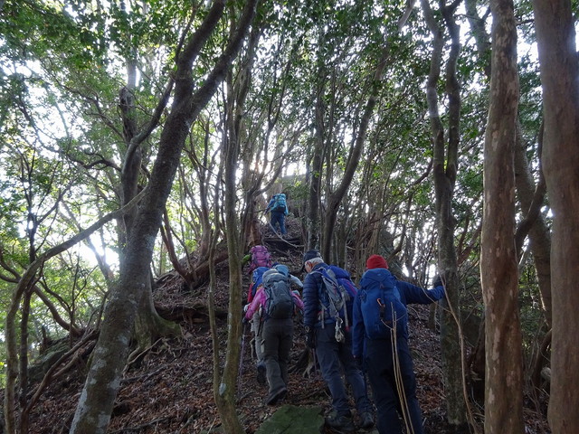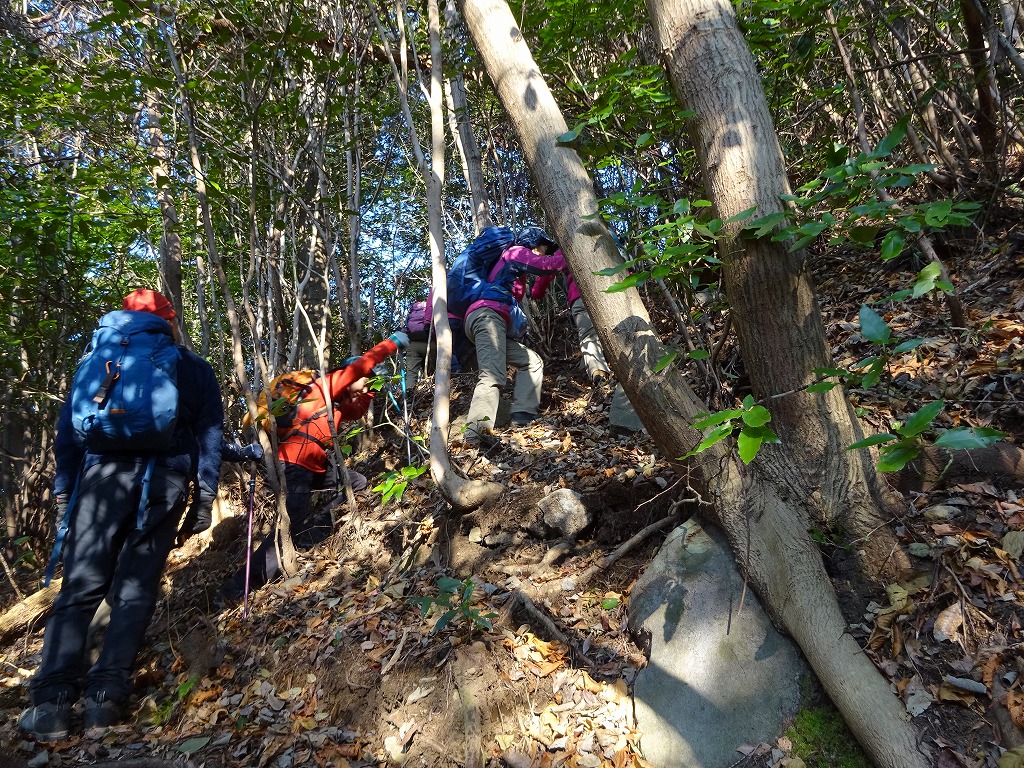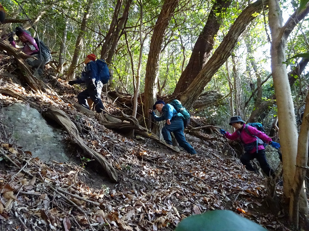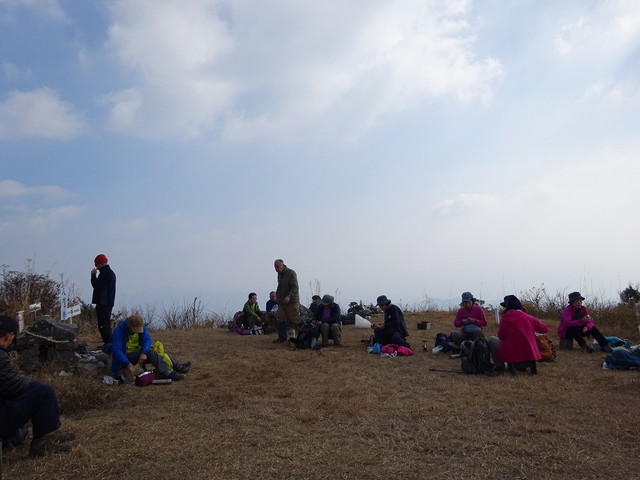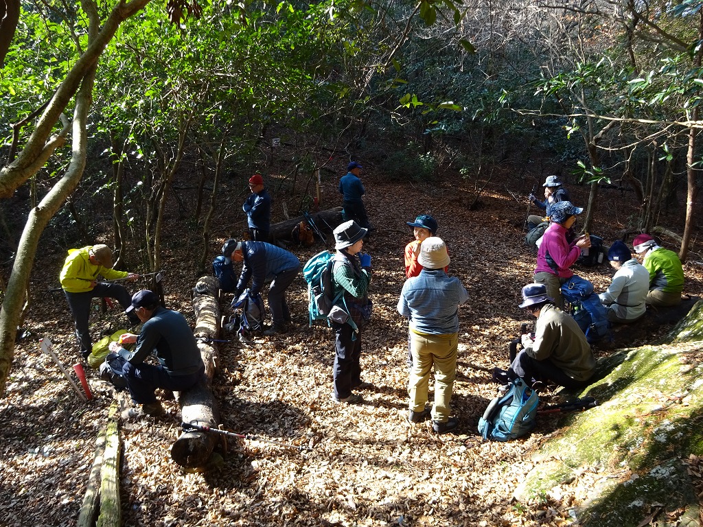 暖かで登山日和、なにより初級コースなので皆さん笑顔・・・と言いたいところだが、なんだか上り一辺倒・・・それも急な箇所だらけ・・・だが、休憩中は笑顔も?