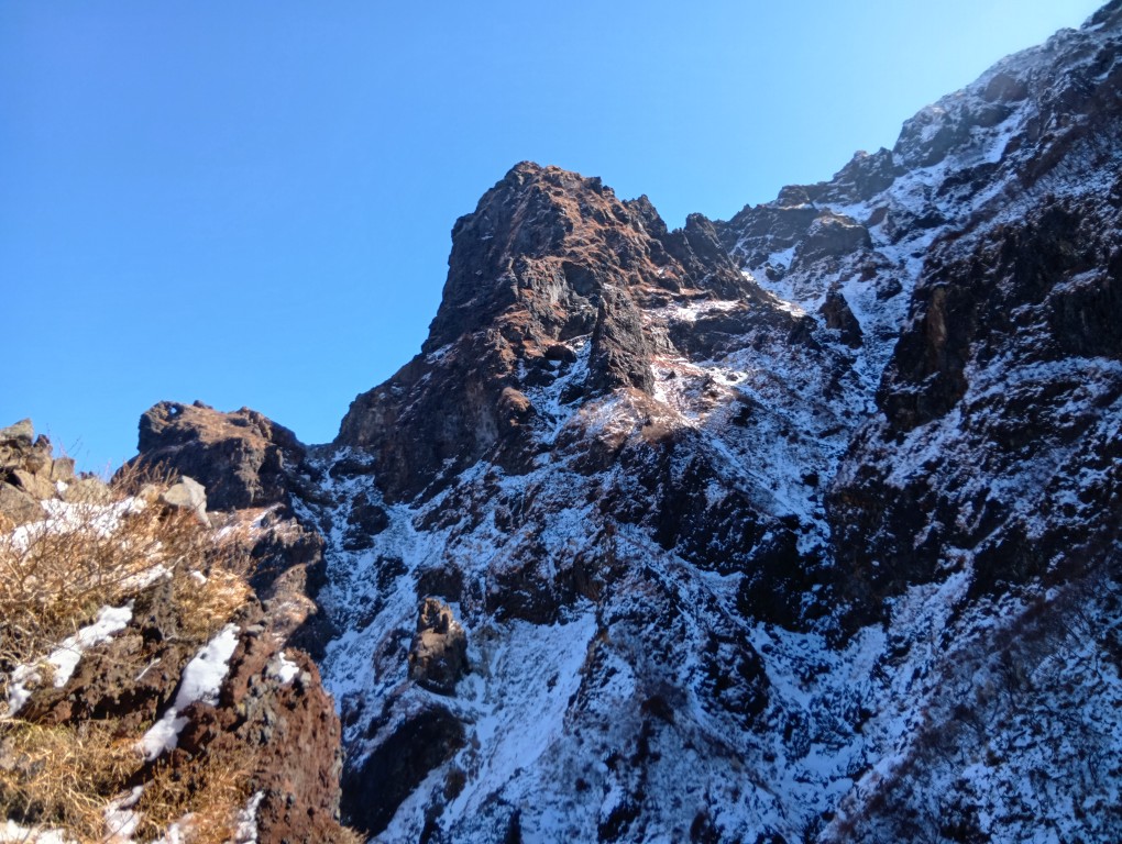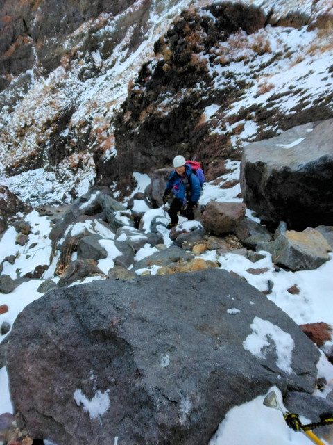 1週間暖かい日が続いた後で、雪も少なく、滝が凍っている事を祈りながら登りました。