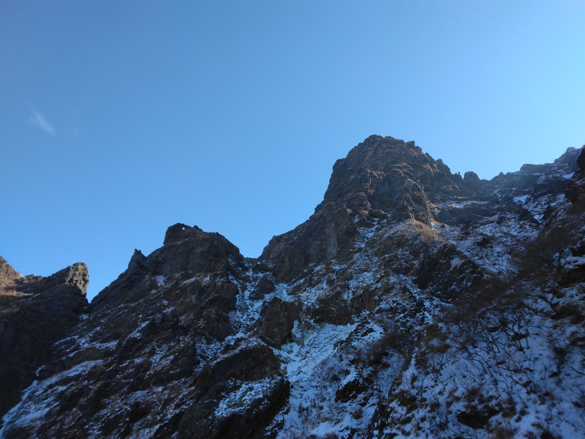 脱渓地点から鷲ヶ峰方面。岩、かっこいい。