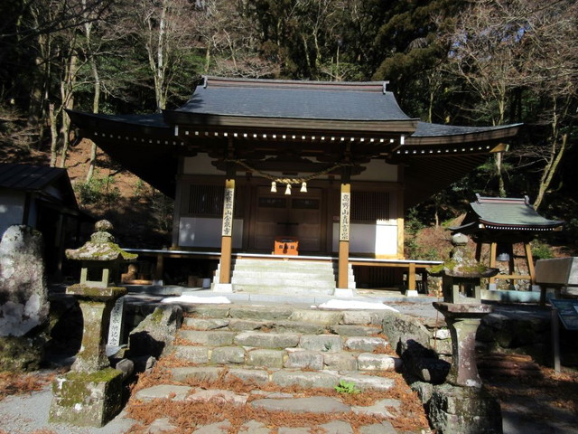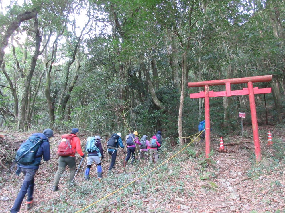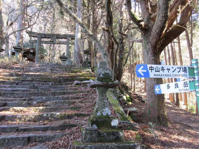 分岐に到着 鳥居をくぐって石段を登っていきます。