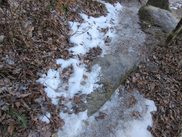 山頂直下の登山道は風が強く、凍っている箇所もありました。用心のため、チェーンスパイクを履いた人もいました。