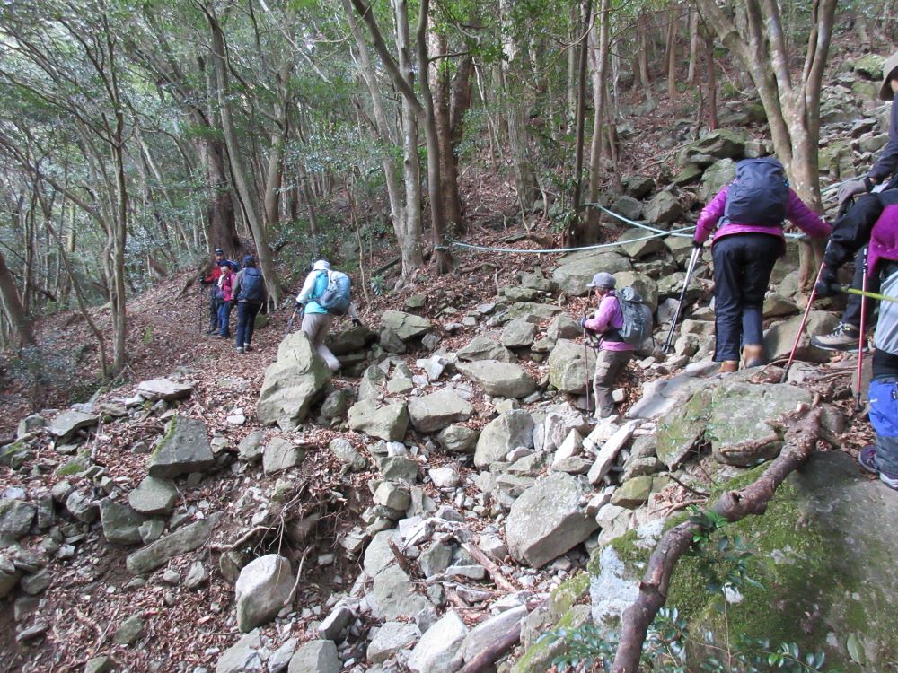 登る時にロープの付け替え作業中でしたが、下山時には完了していて使わせていただきました。整備をされている方々に感謝です。