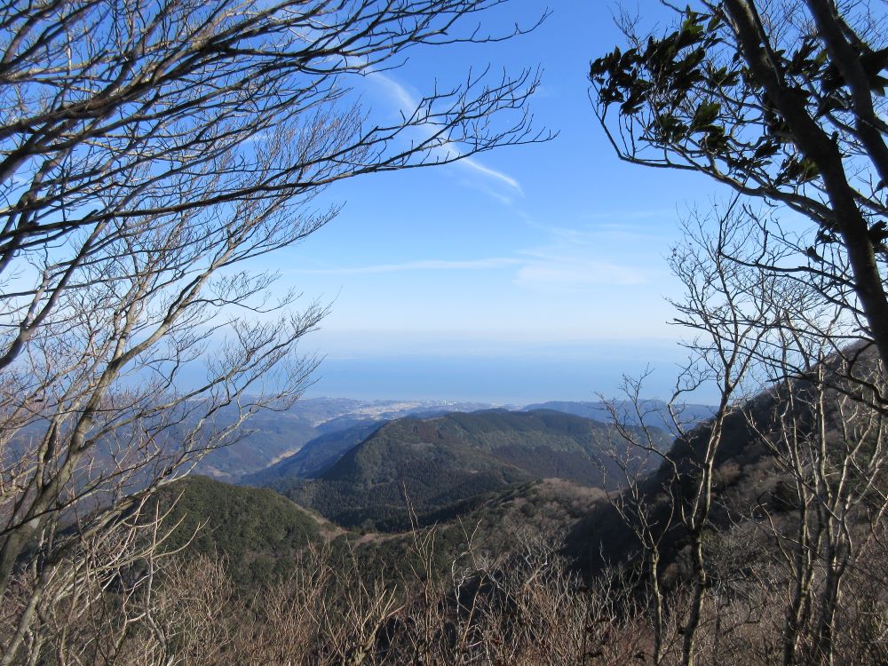 山頂からの景色 大魚神社の海中鳥居は見えないので満潮のようです。