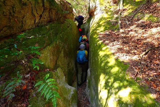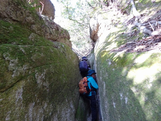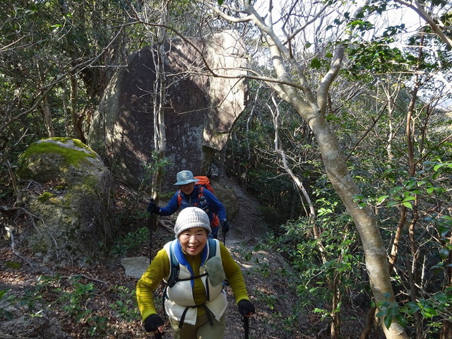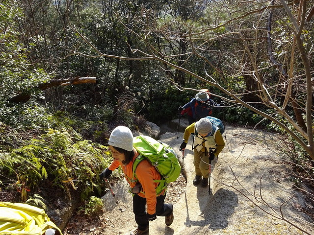 「さて、土器山(429m)八天山登山口から、風化した花崗岩の表面を掘った滑りやすい上りが延々と続くとか・・・」