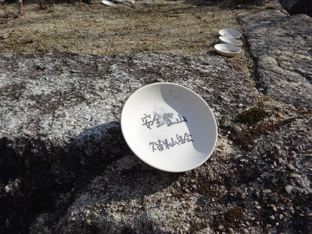さて、時間を少々戻して山頂直下での写真@を追加、素焼きの土器に願い事を書いて後ろの方に納めるのですが、お尻の方?におさめた