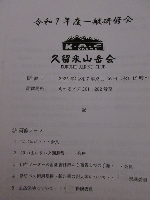 保険委員より山岳保険の説明 山岳事故の例をもとに具体的な説明でした。