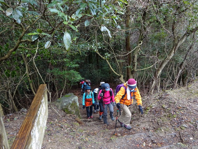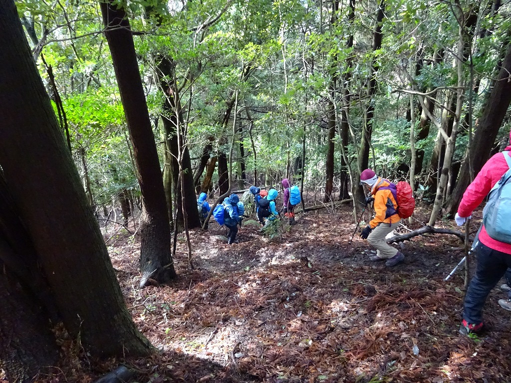 いきなりの急斜面、このあと上ったり、下ったりが何度も、それも急な・・・。