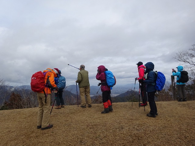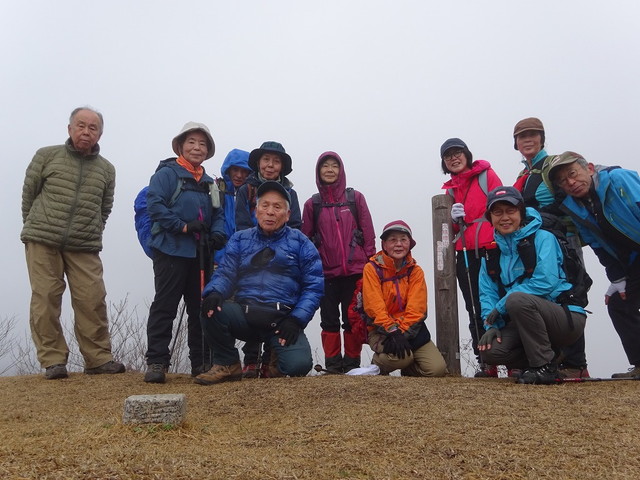 山頂へ。視界・・・なし。寒い・・・温まるわよ・・・と