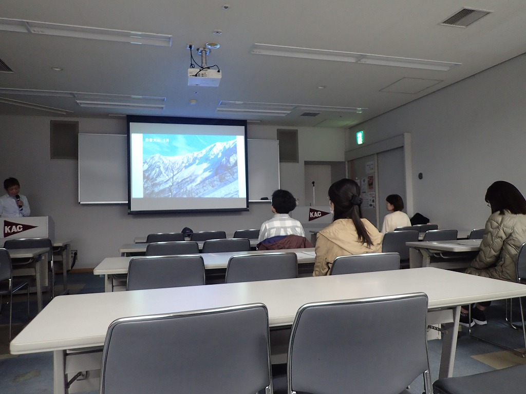 春夏秋冬の山写真のスライドと他にk島さん編集による雪山動画も上映して☆彡会山行の魅力を発信