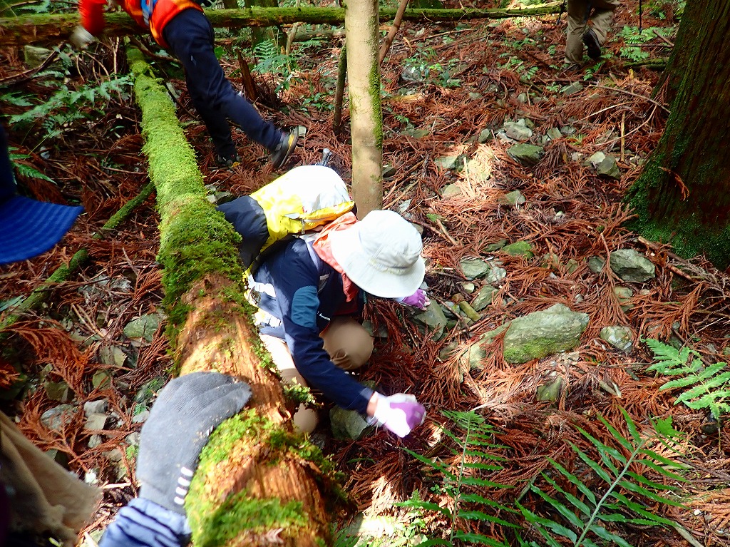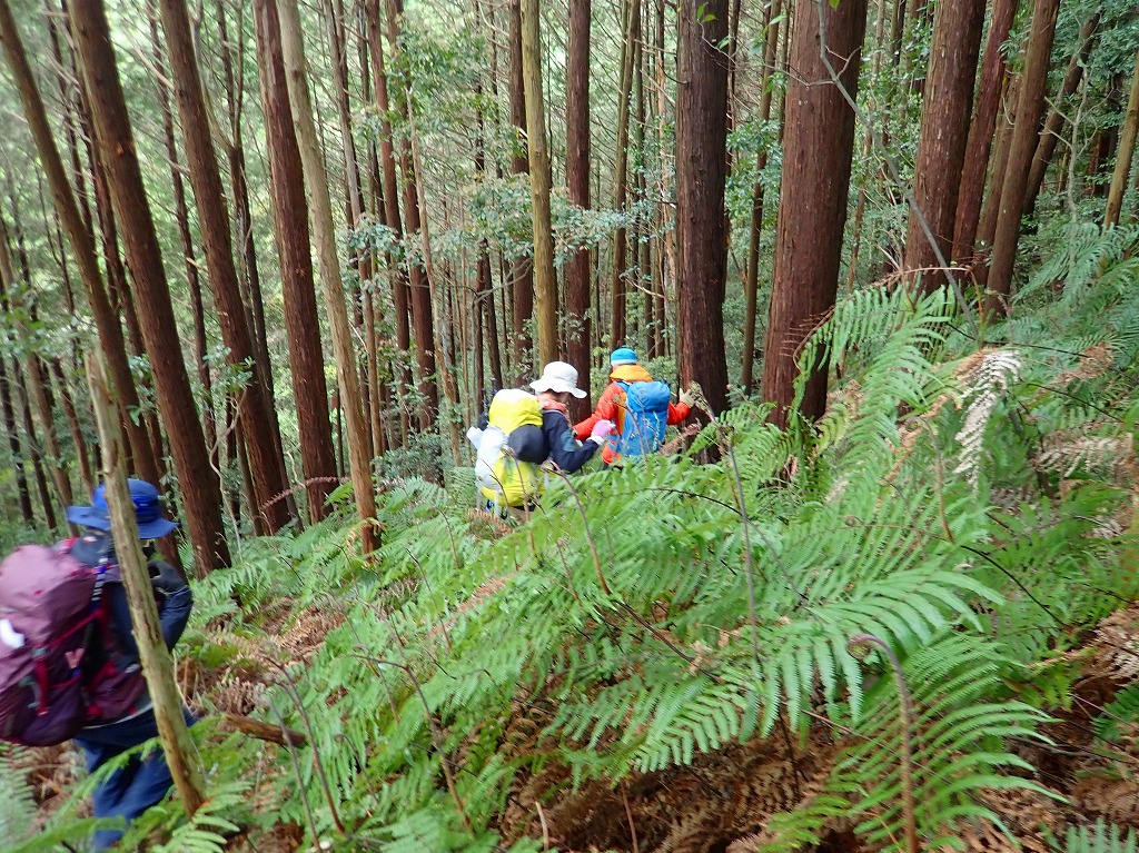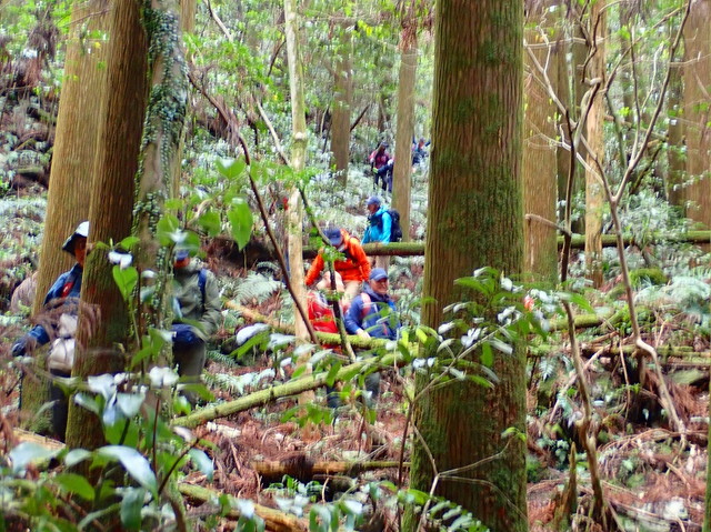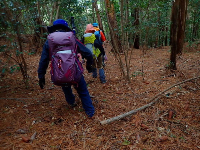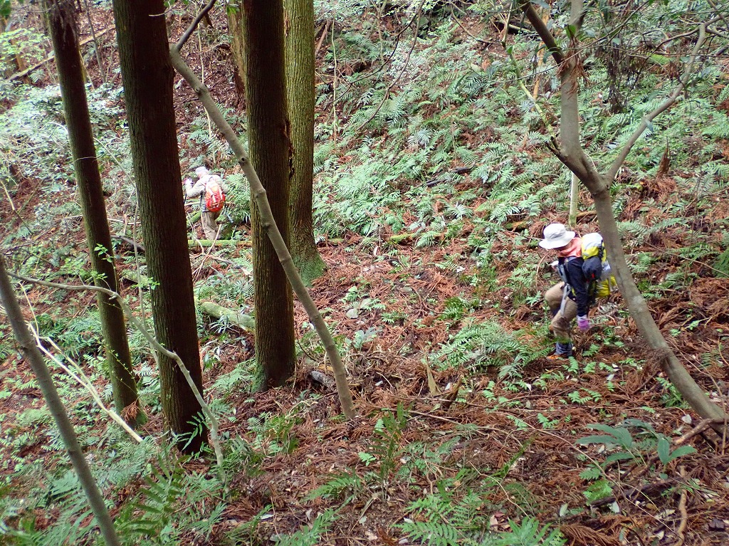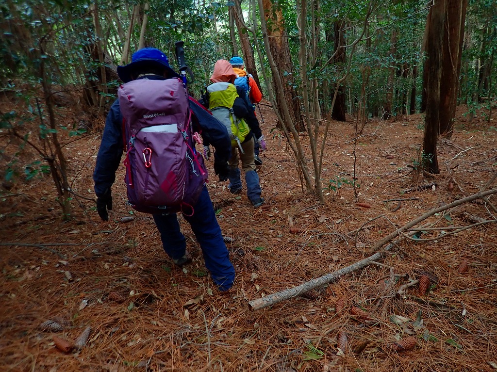 下山もバリエーションルートで。同じような林の中、一人で歩けますか?漠然と前の人に続いて歩いていませんでしたか。
