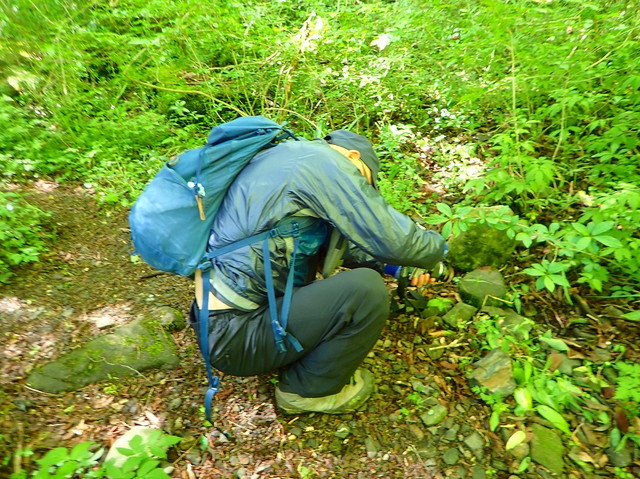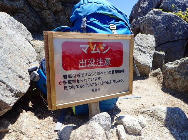 山頂の岩場はマムシの巣があるのにザックを置くたかちゃん