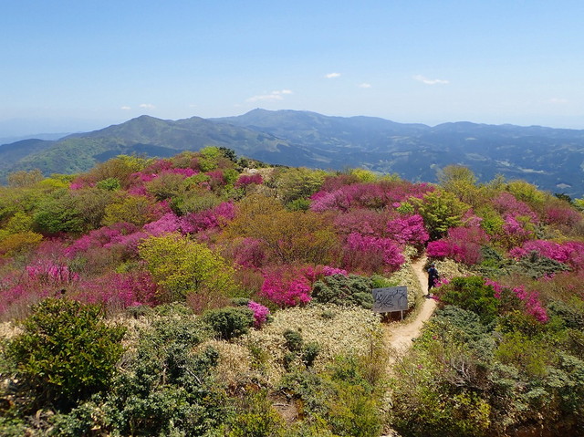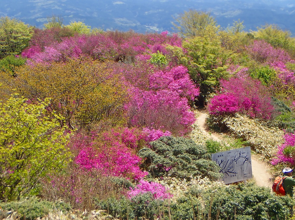 山頂から下山の縦走路もミツバツツジのパッチワークが見えてワクワク。2年前も凄かったけど今年も素晴らしい。