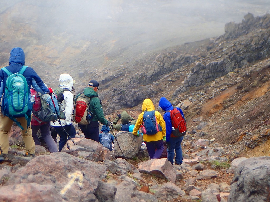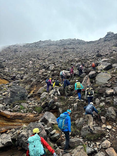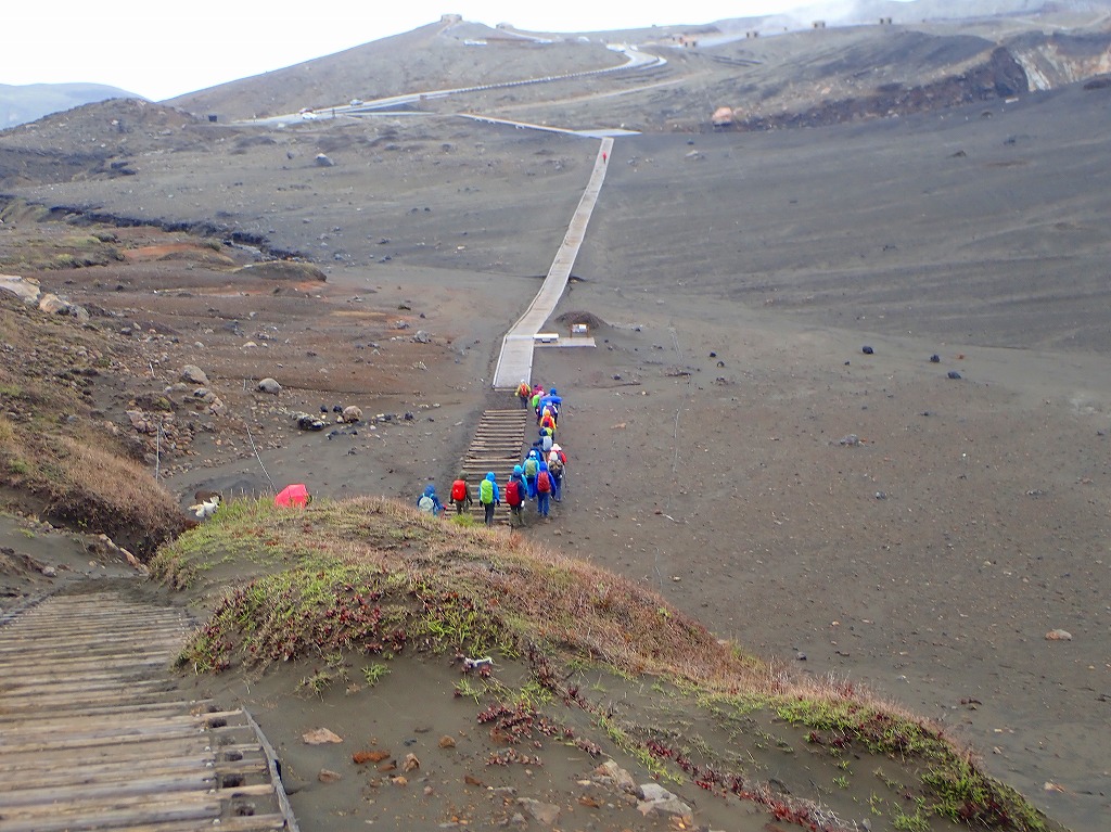 火山ガスの濃度が高くなってると放送がありました。急ぐけど焦らずに足元注意!