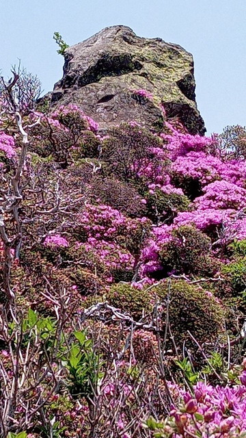東尾根の急登に癒しのミヤマキリシマ