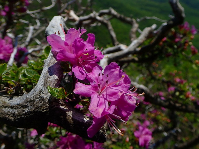 白骨樹に咲いたミヤマキリシマ、樹齢は・・・