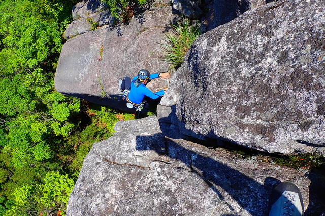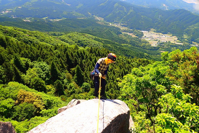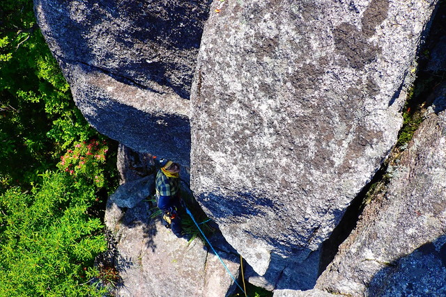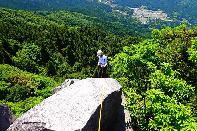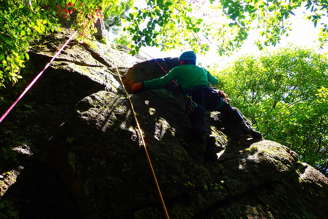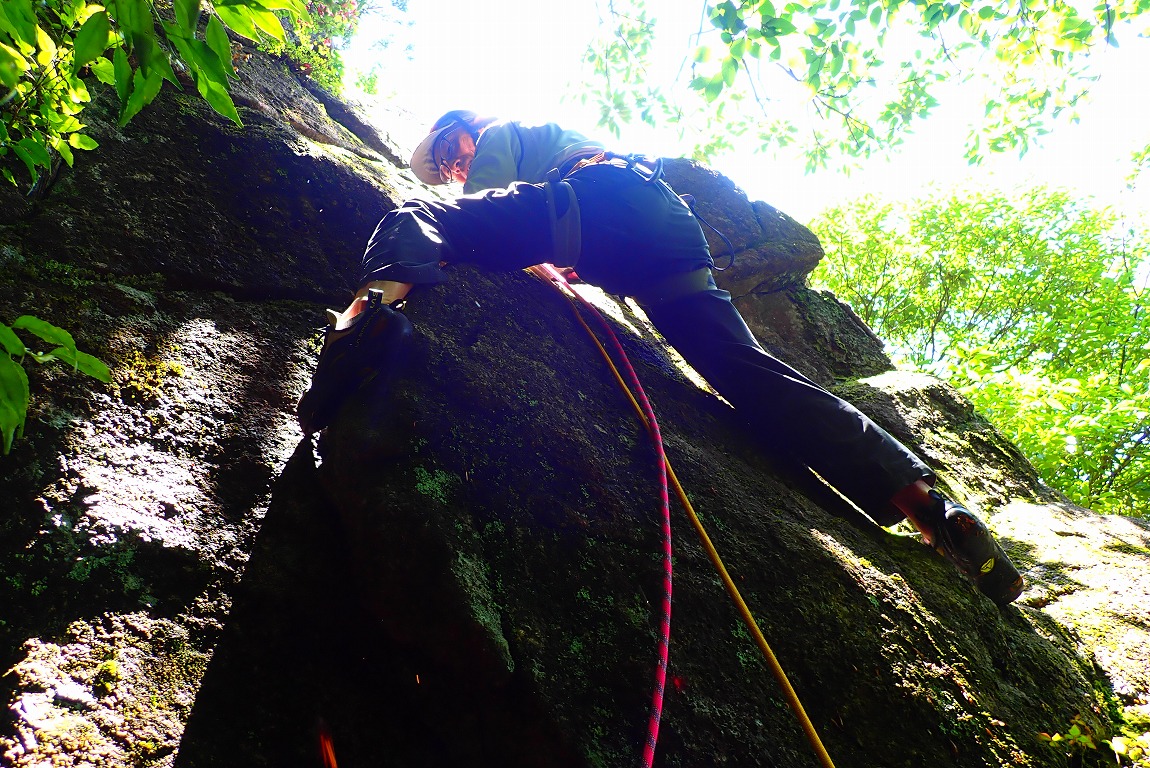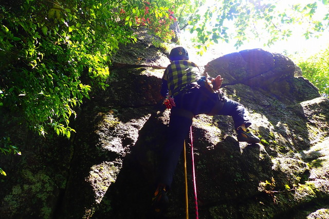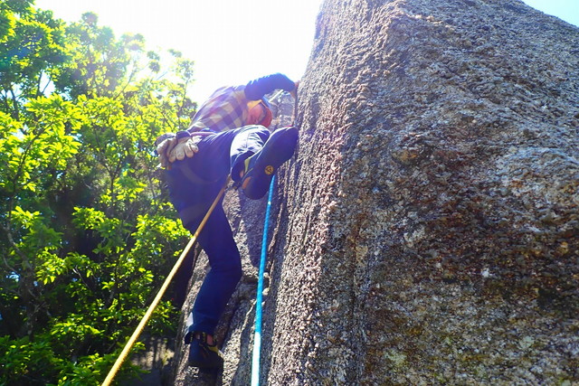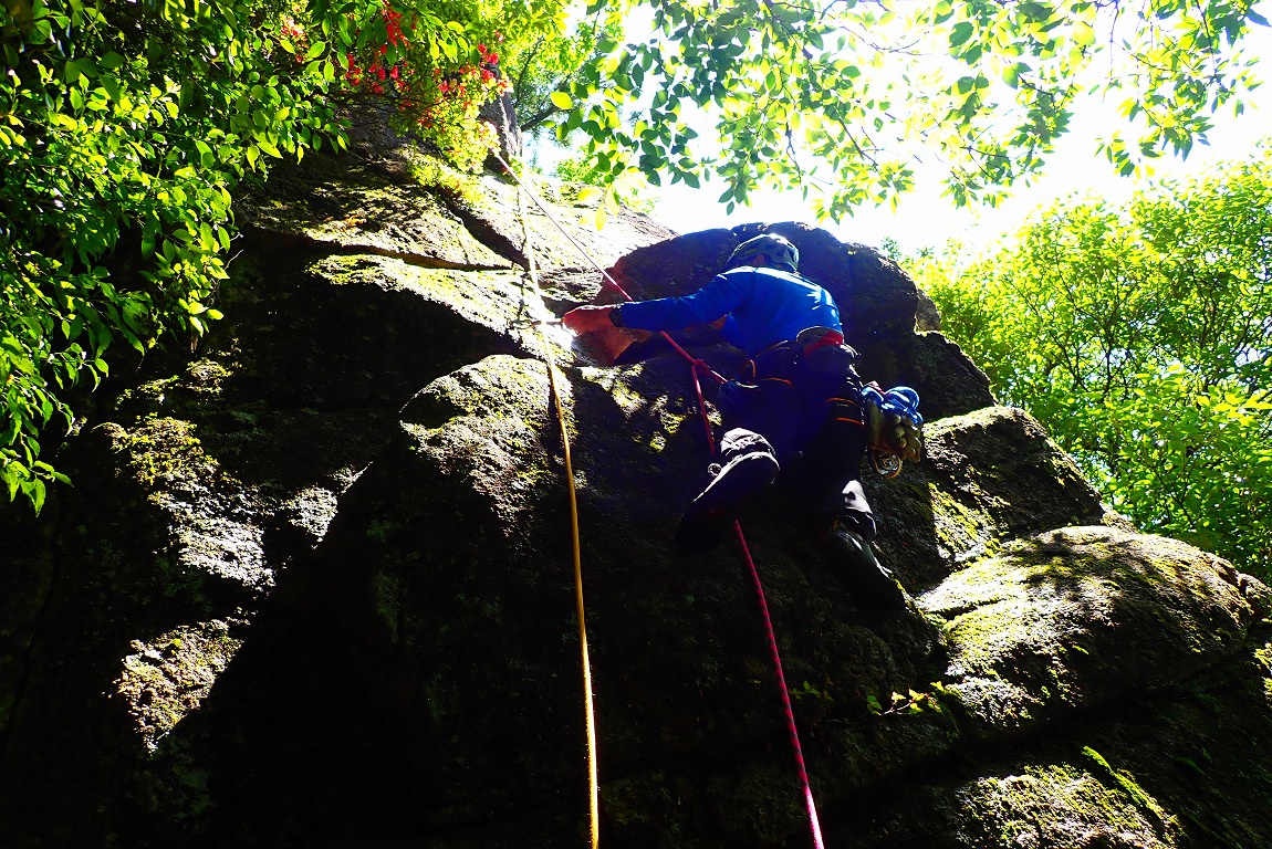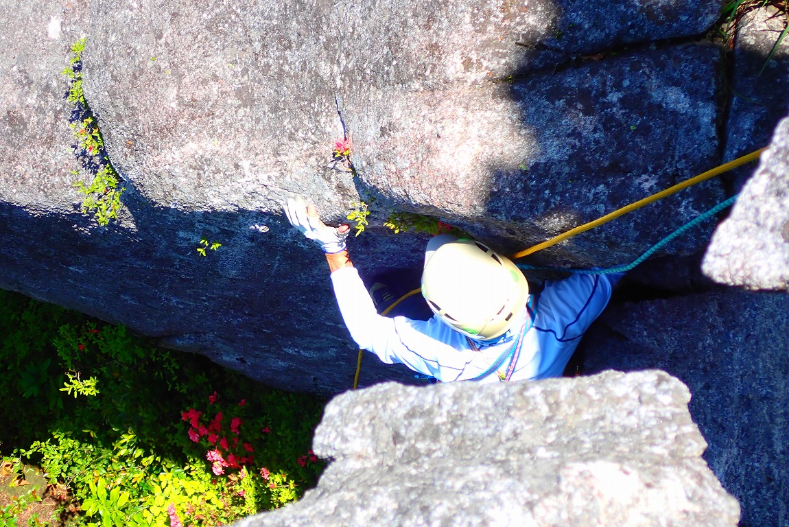 前日までの雨で心配でしたが当日は晴れ、ただ1Pは岩が濡れていて皆さん苦戦しました。