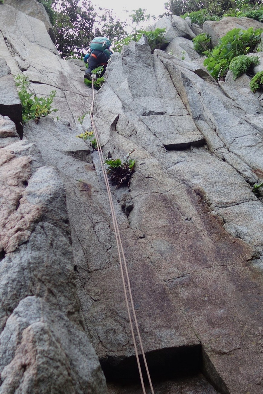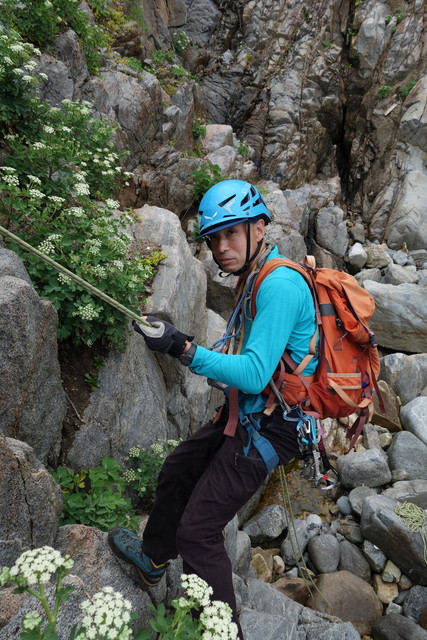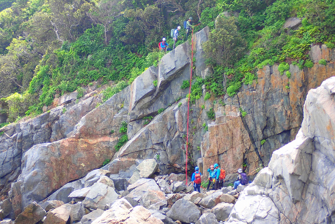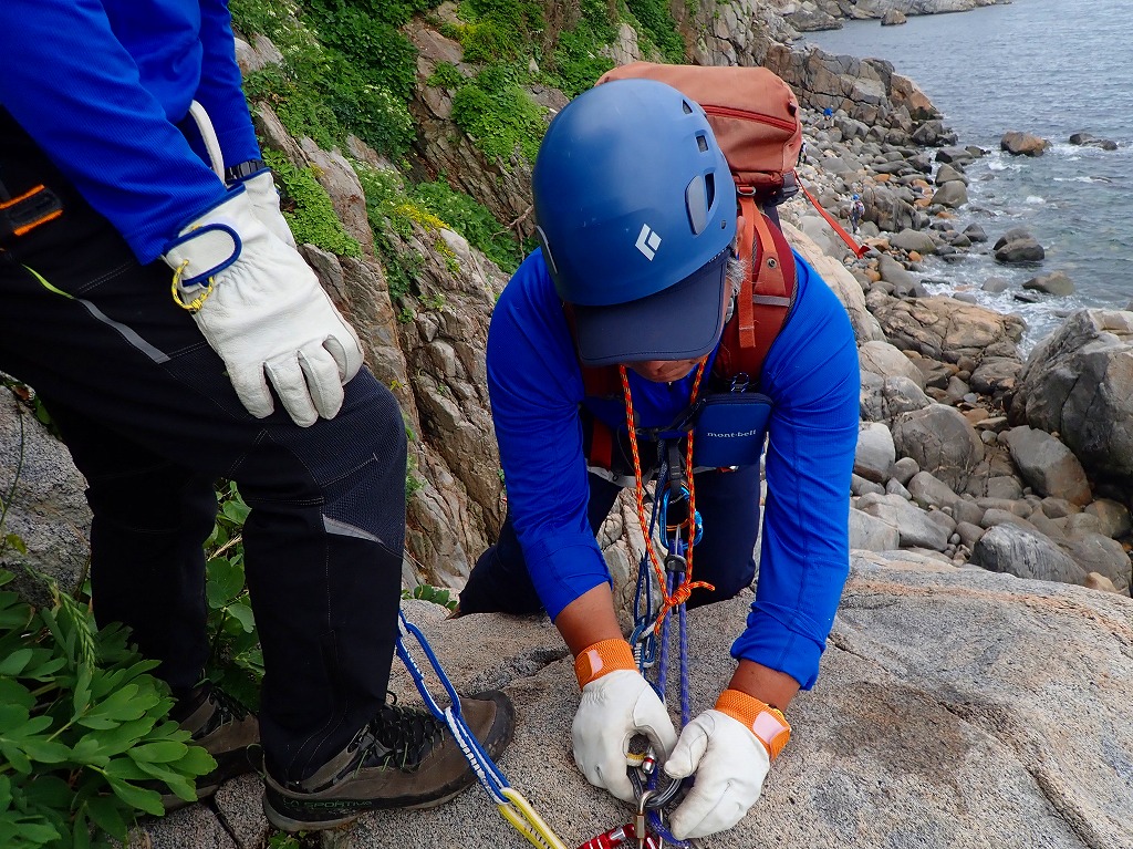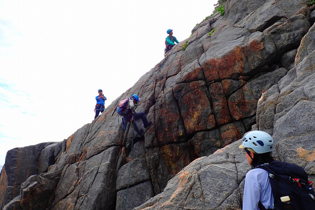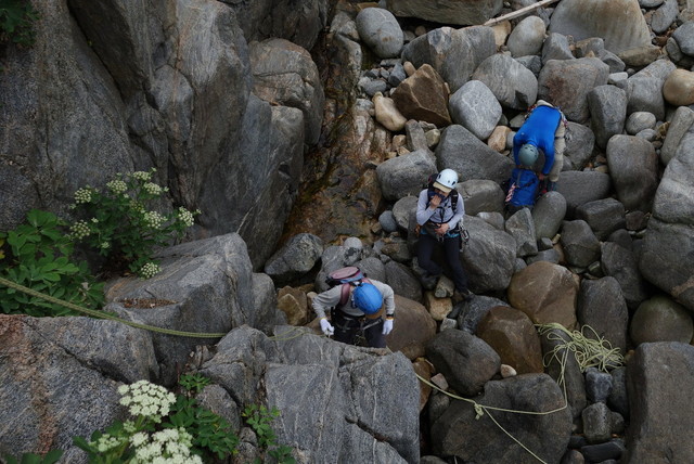 登っては懸垂下降の連続で約10回の懸垂下降でした。4チームに分けて行動しました。