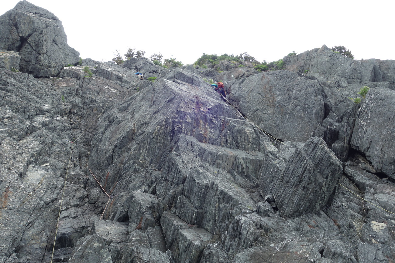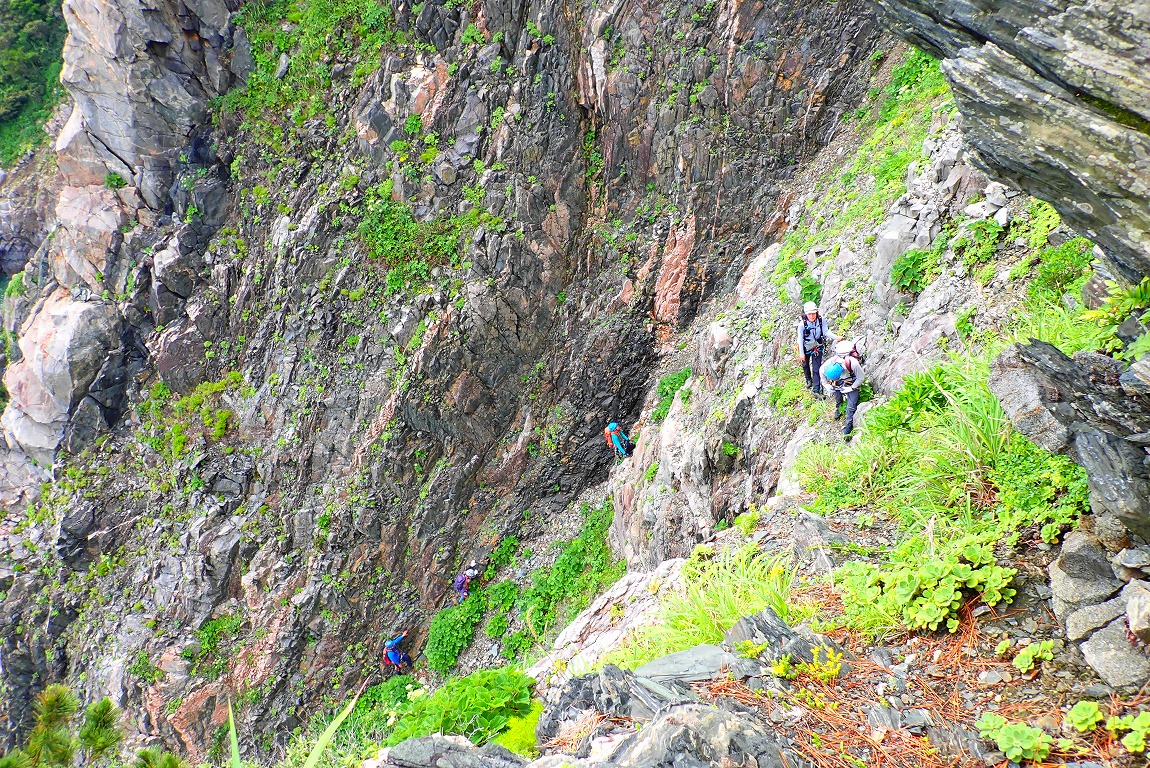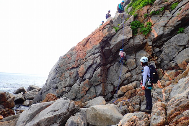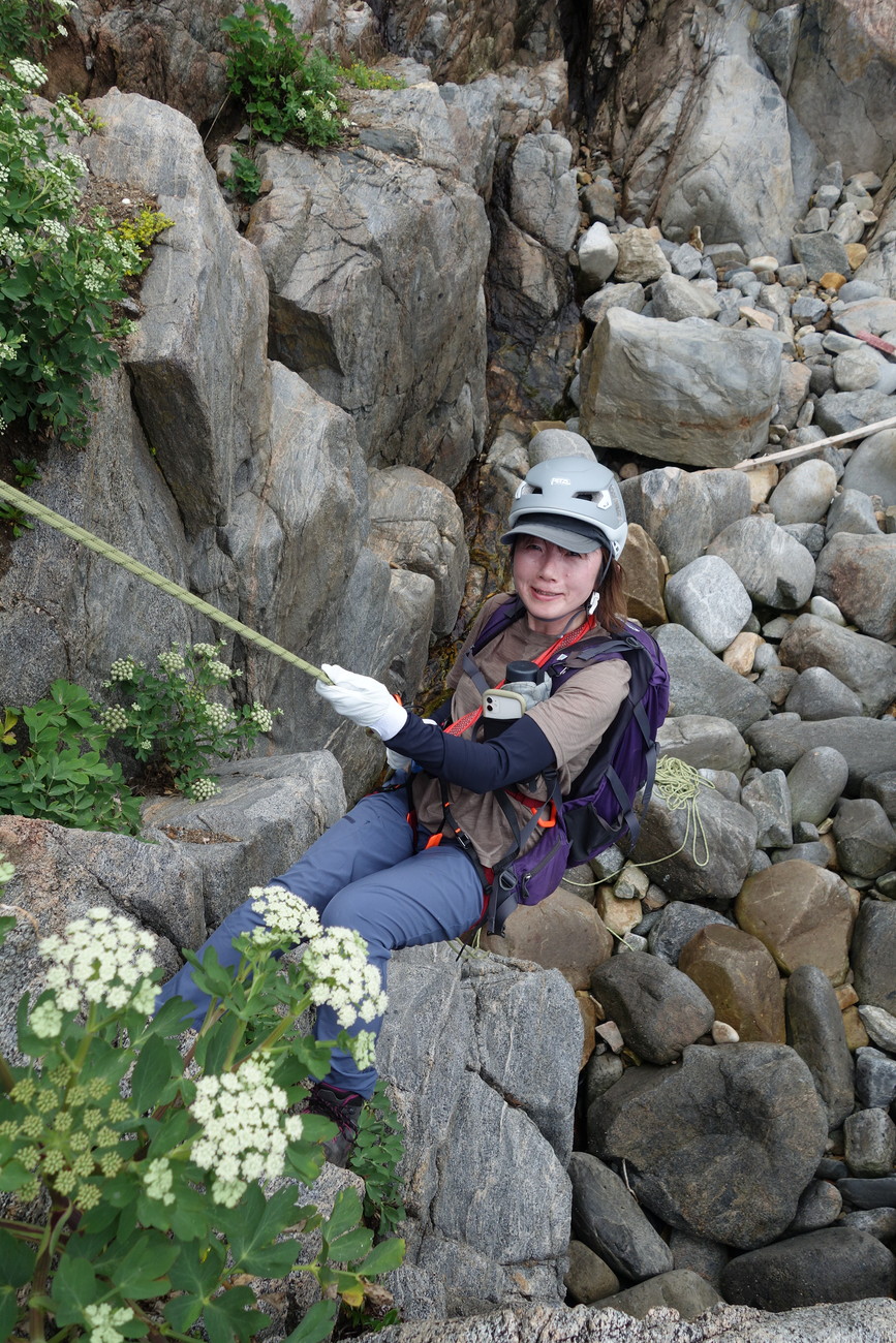 登っては懸垂下降の連続で約10回の懸垂下降でした。4チームに分けて行動しました。