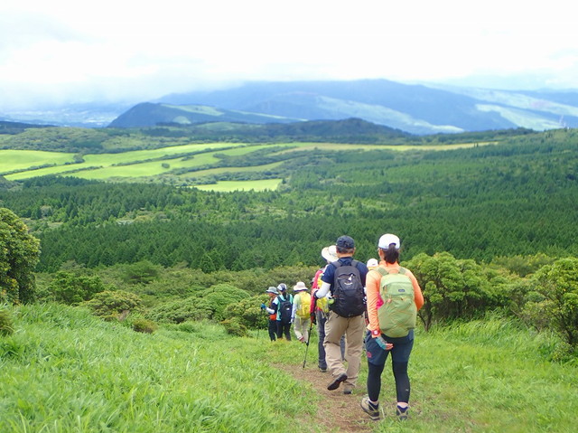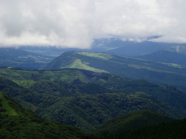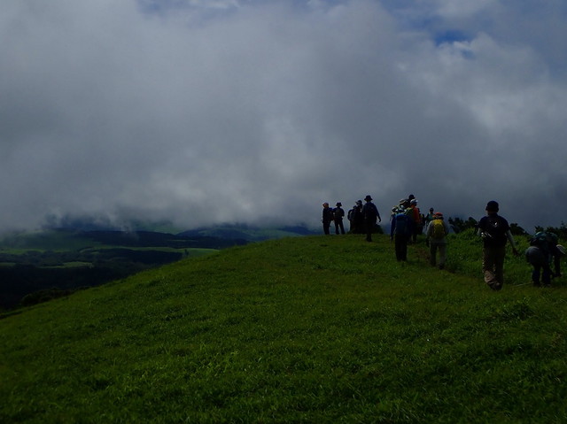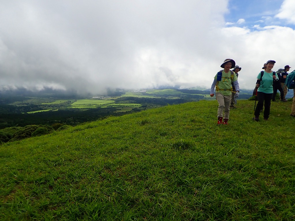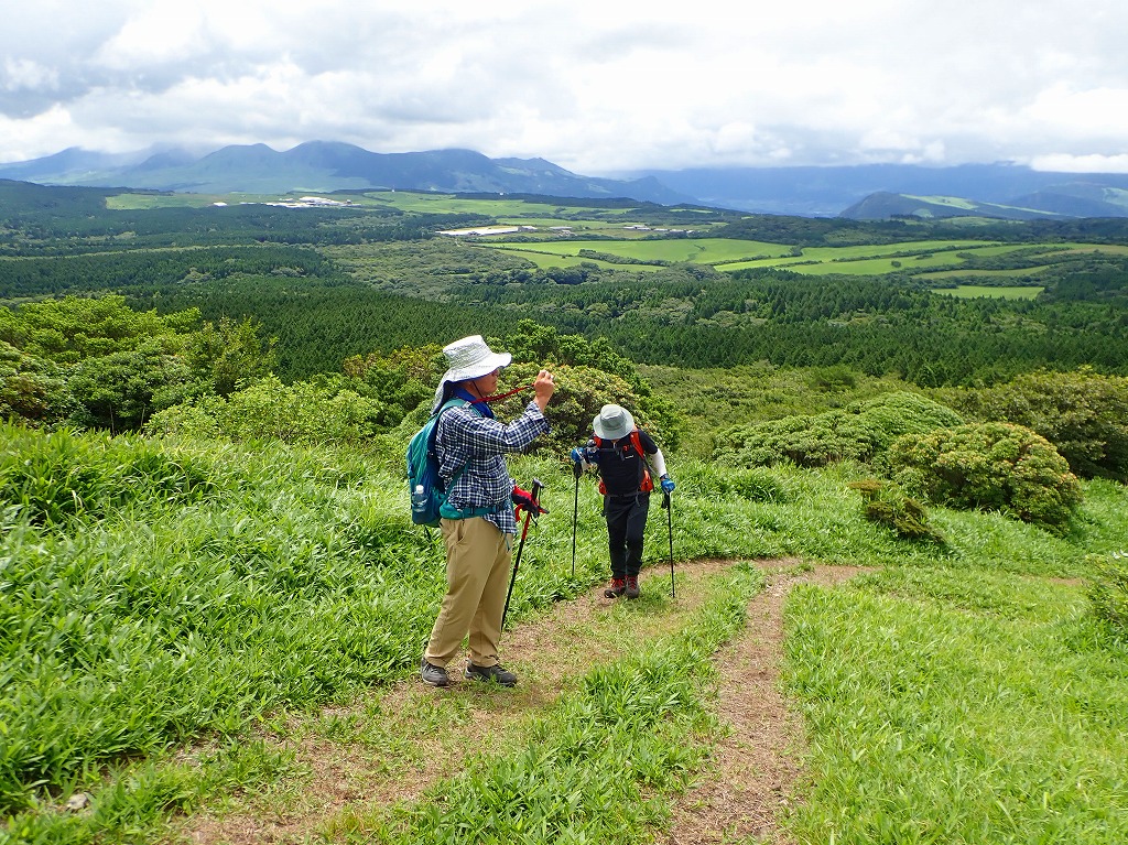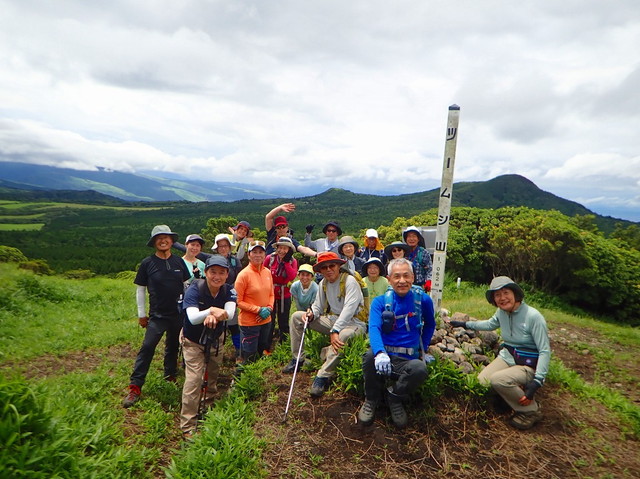 午後から雨予報で天気が心配されましたが、山頂では晴れ間も見え、心地よい風が吹き、阿蘇の広大な景色を楽しむことができました。