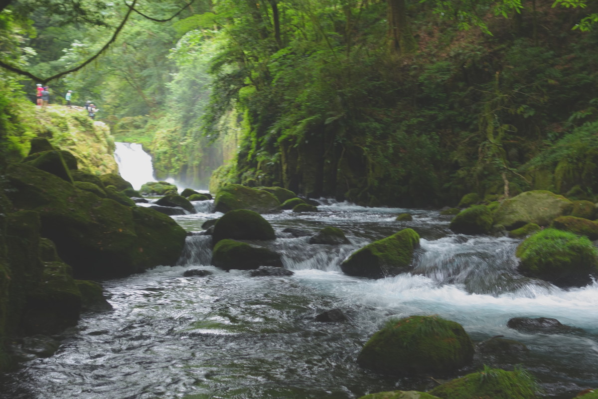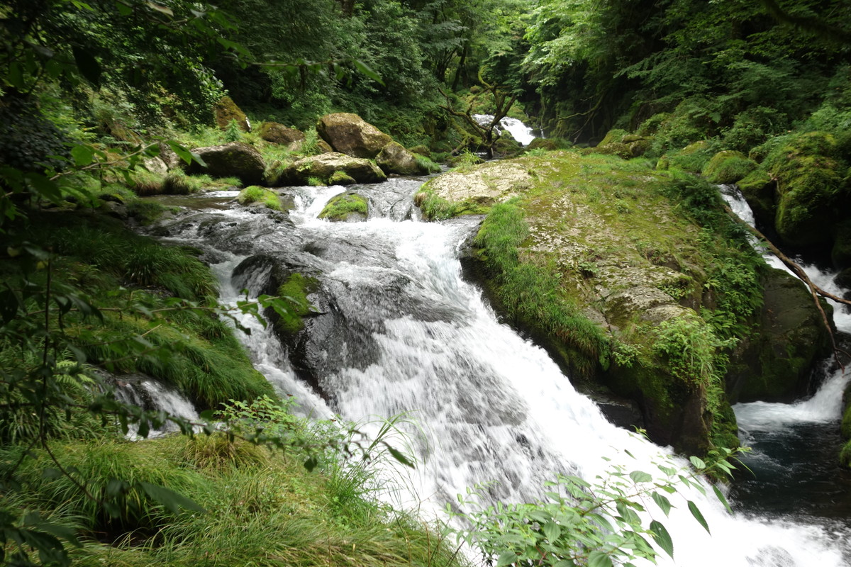 その後は菊池渓谷へ移動。天然クーラーのヒンヤリとした空気のなか連日の暑さを忘れ自然の清涼感を満喫しました。