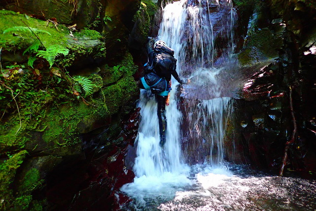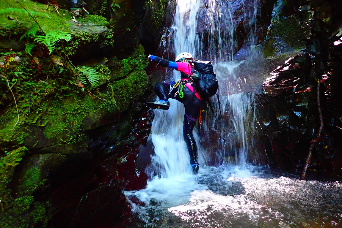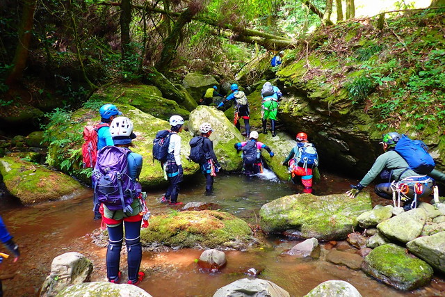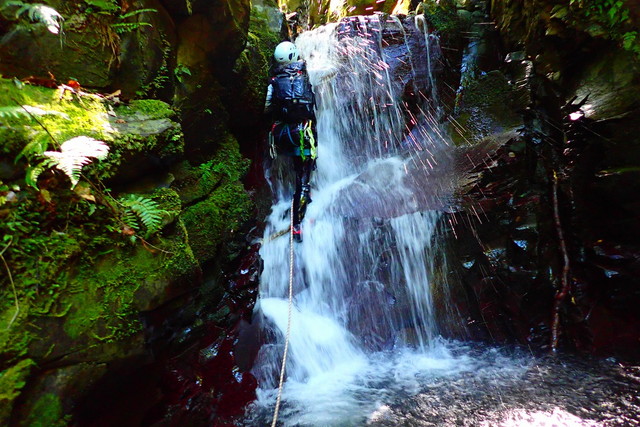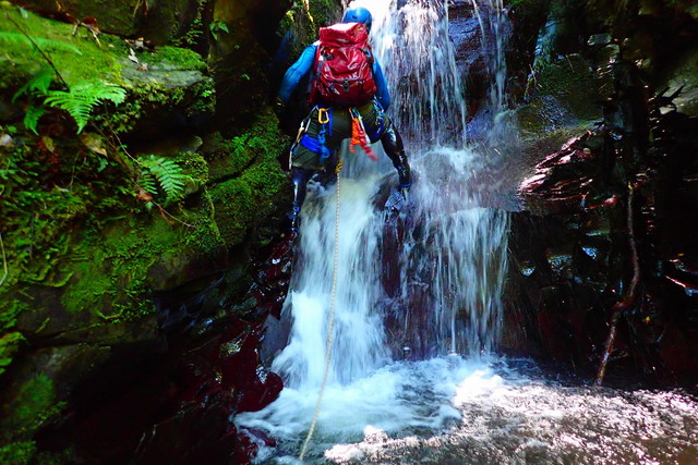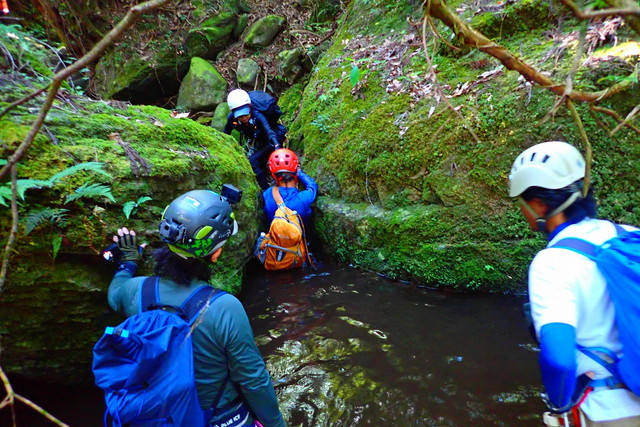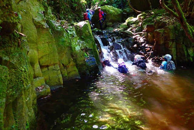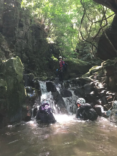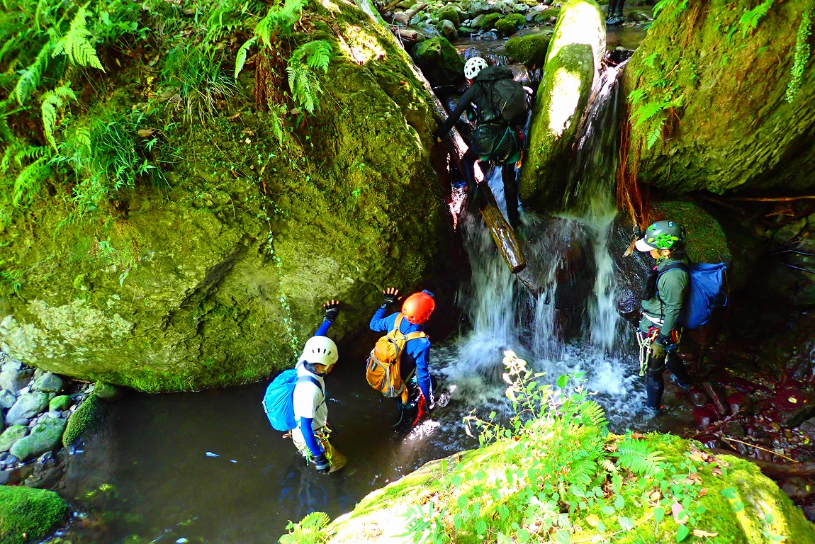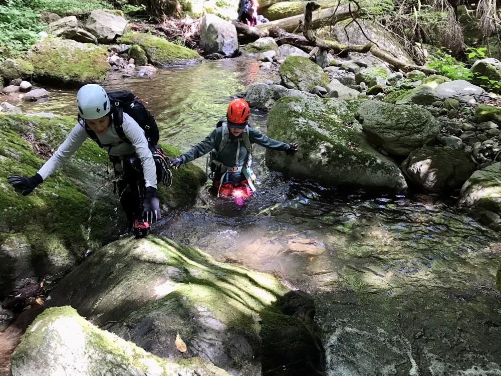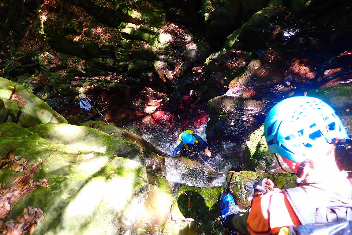 3〜4mの滝、続けて7〜8mの滝もロープを出してもらい、皆さん果敢に滝登りに挑戦し、完登しました。