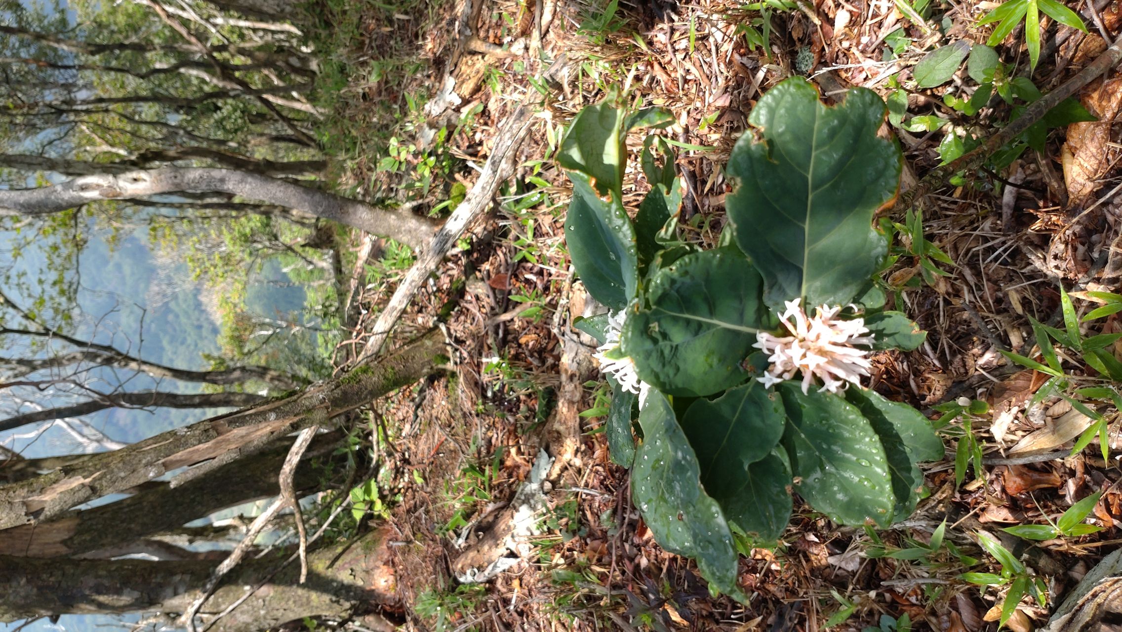 鉾岳に咲いていたツチビノキのピンクと白