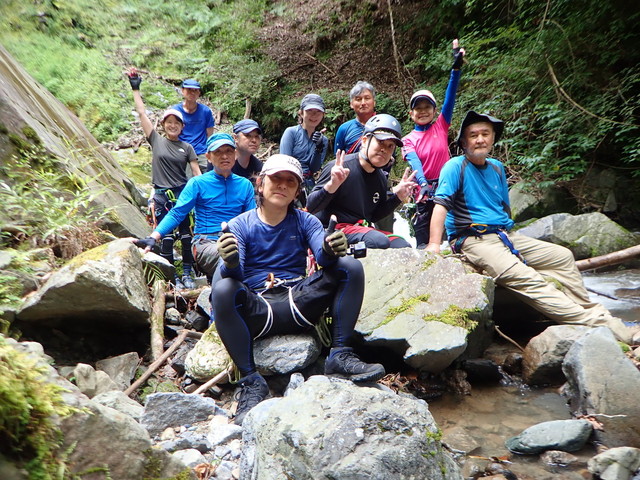 総勢10名、天気が心配でしたが当日は曇り時々晴れで気持ちの良い遡行ができました。