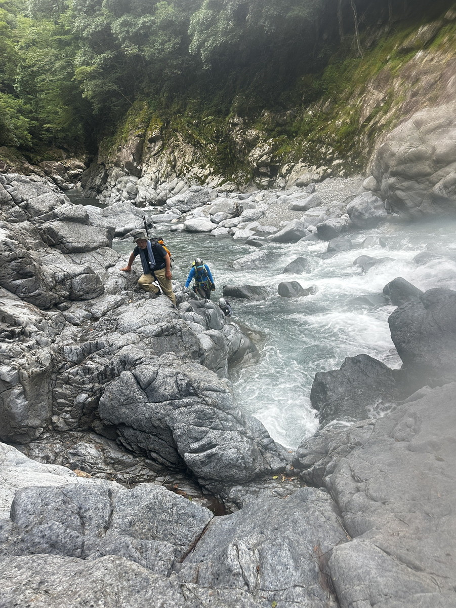 5:00久留米出発 7:50川辺川入渓 8:30中道谷入渓(標高350m)13:40昼食、脱渓(標高555m) 19:40久留米着