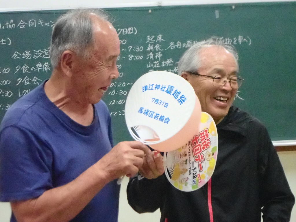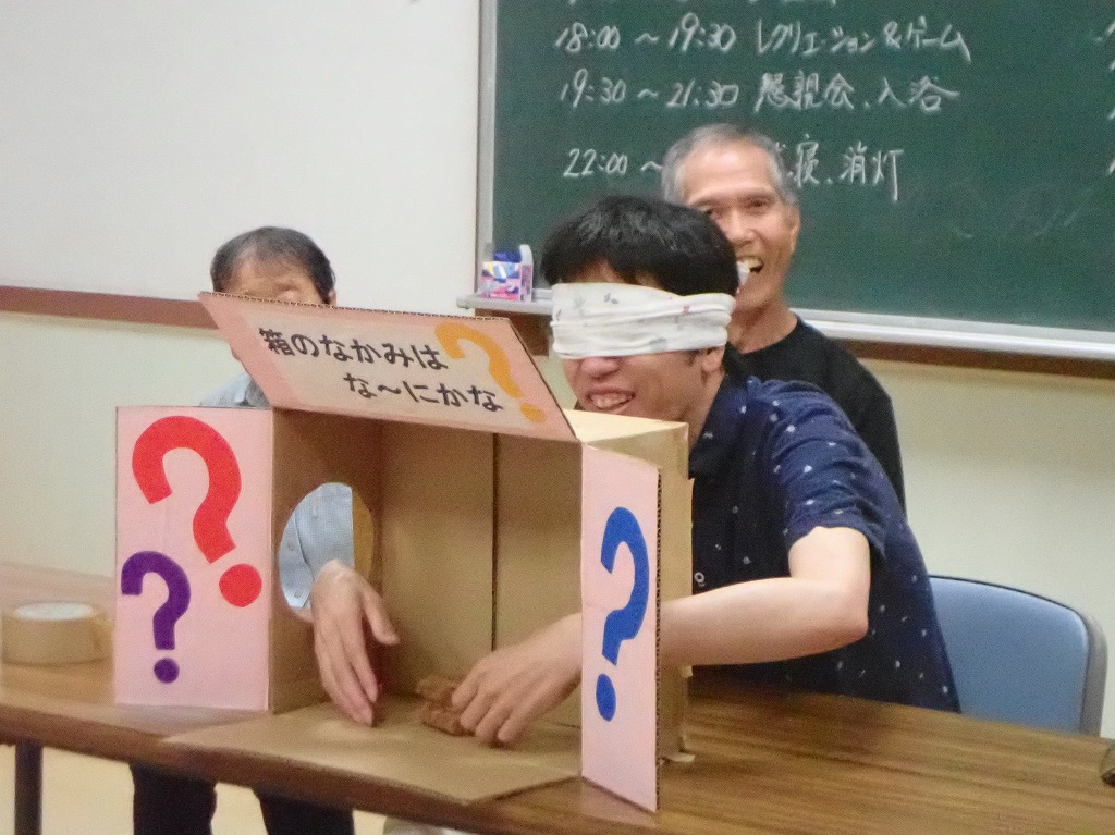 全員参加の〇×ゲーム、ジェスチャーゲーム、風船運び、そして箱の中身当て(希望者)と会の垣根を越えて大爆笑の楽しい時を過ごしました。