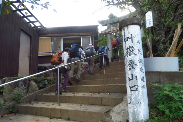 叶嶽神社参道からスタート。市民健康道場とあります。
