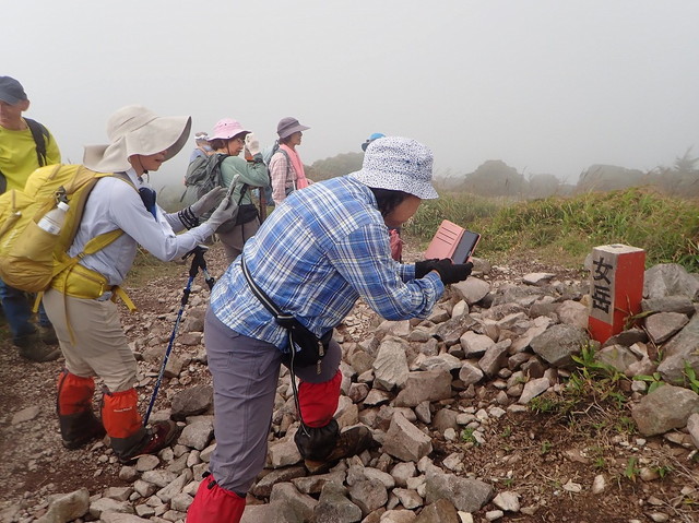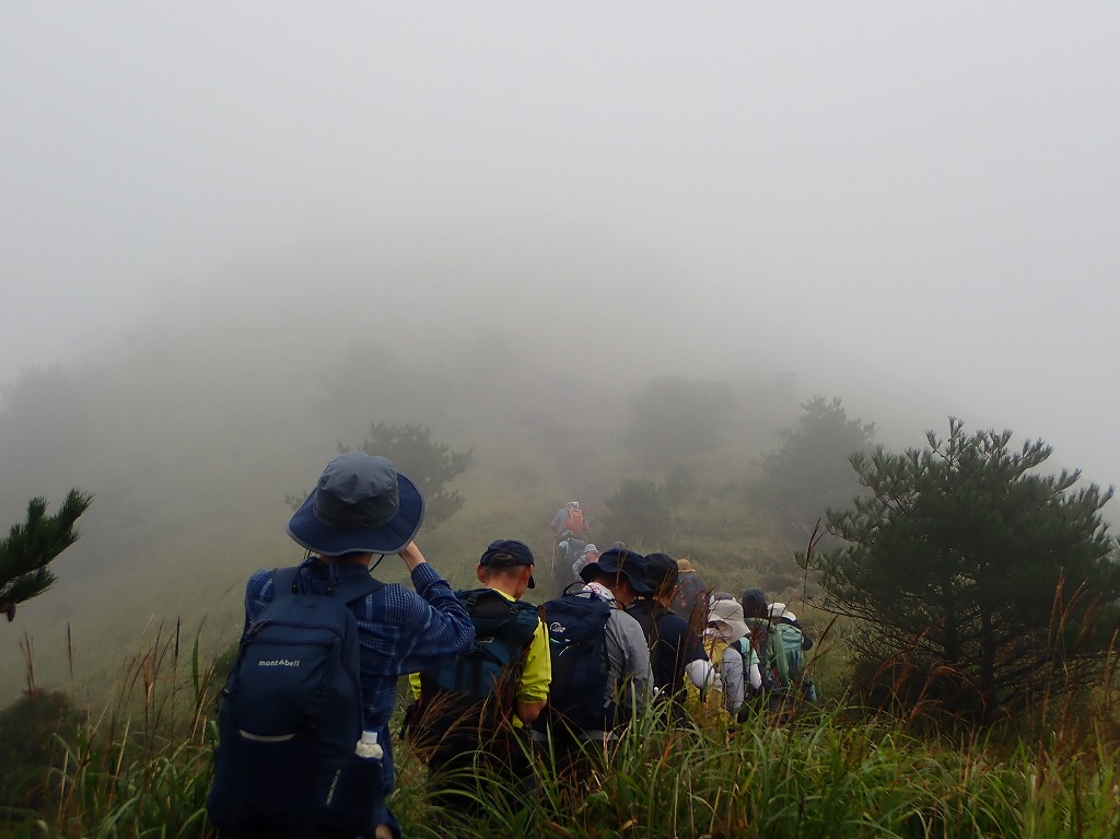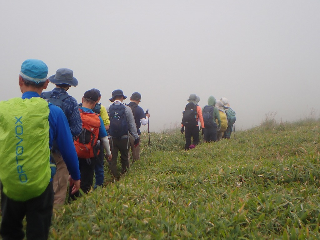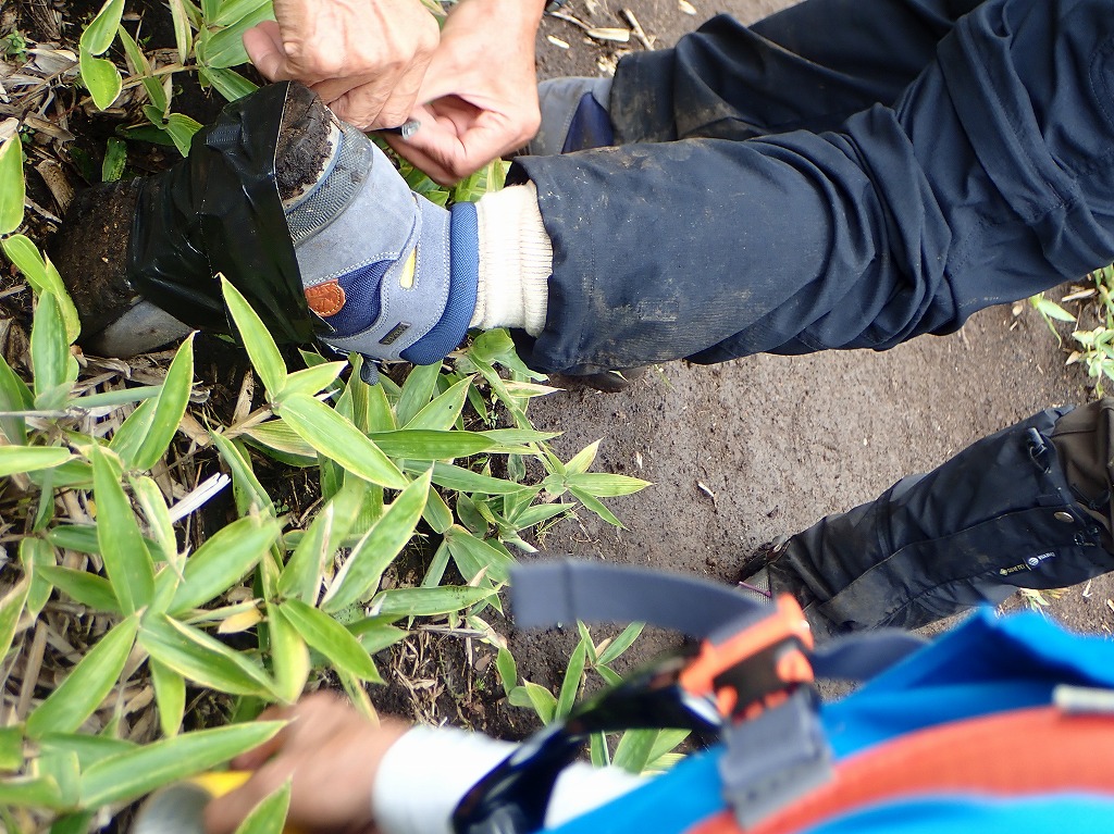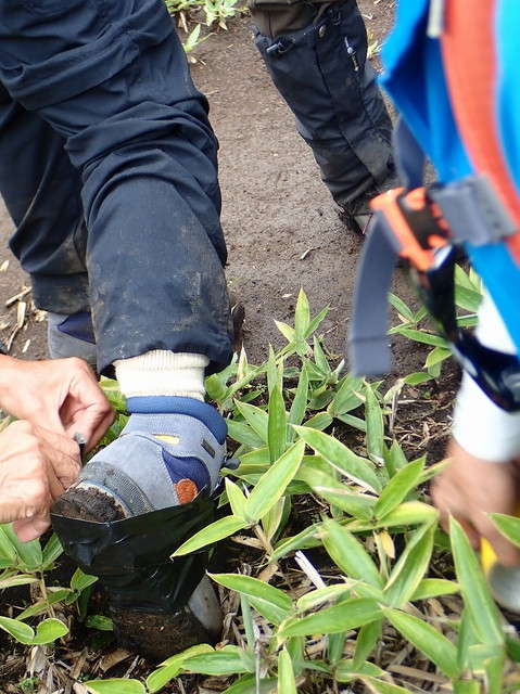 下山途中T田さんのソールが剥がれましたが、他の人が持っていたガムテープとダクトテープで補修、パンストを持ってる人もいました。緊急時の補修用品の必要性を感じたひと場面でした。