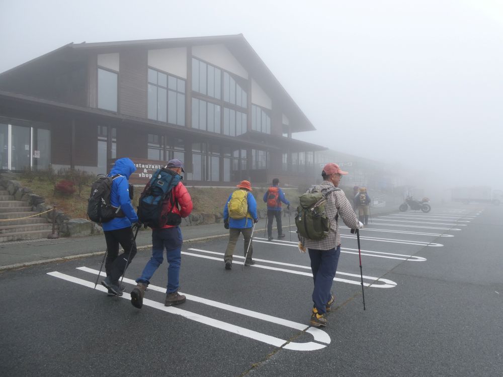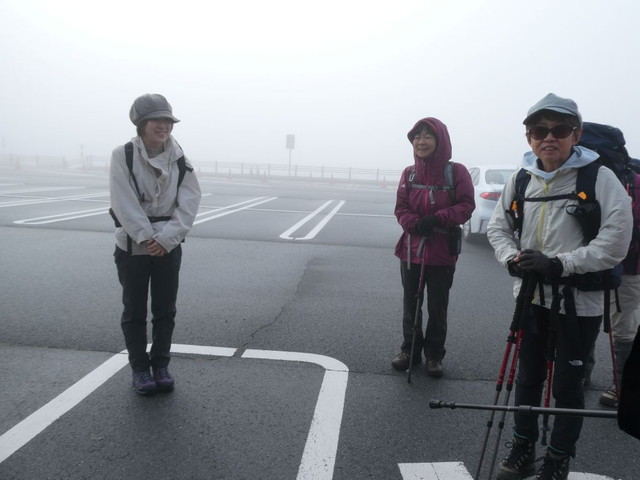 駐車場を出発 ガスガス真っ白