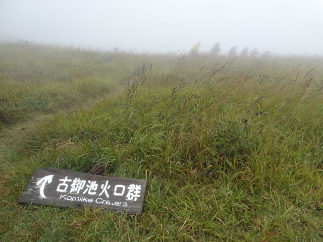 古御池火口群に向かいます。離れたら迷子になりそうで急いで付いて行きます。