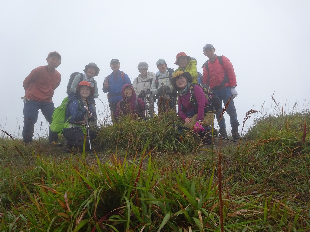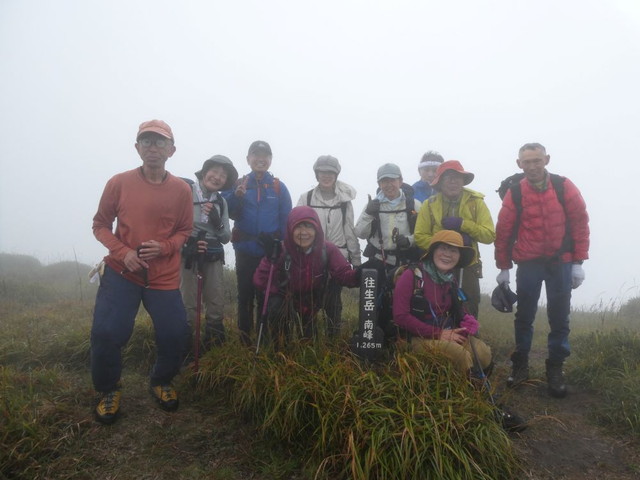 往生岳南峰で集合写真 このあと北峰と西峰を巡りました。