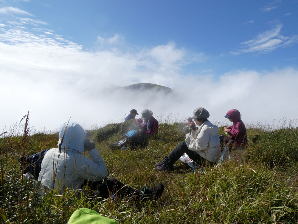 南峰集合写真追加します、とはいうものの、構図は今一・・・。南峰に戻っての昼食、