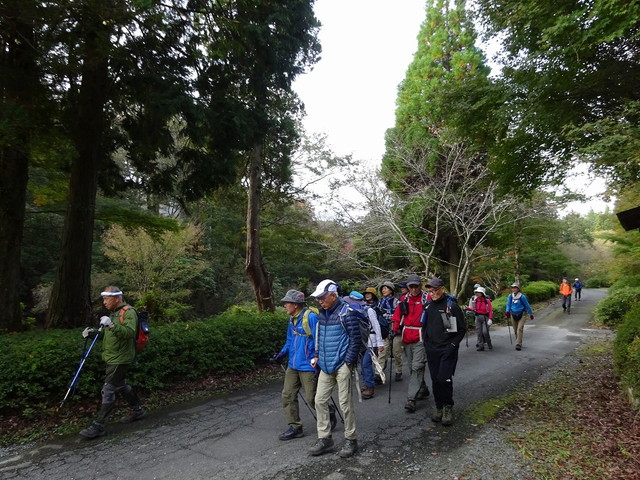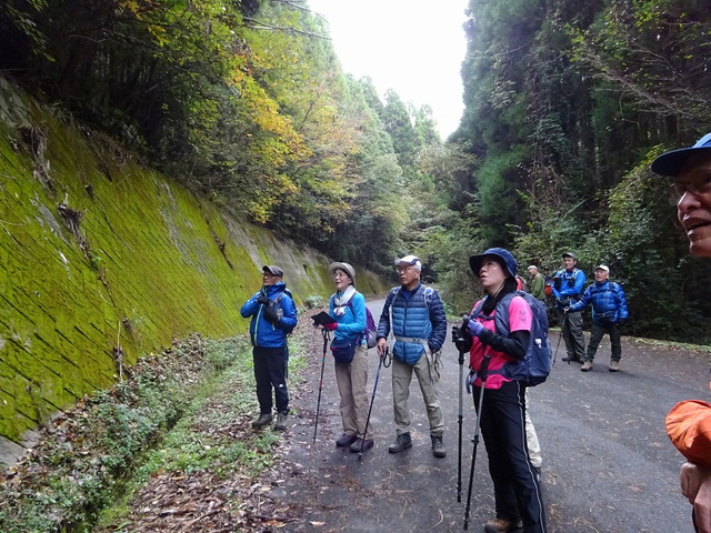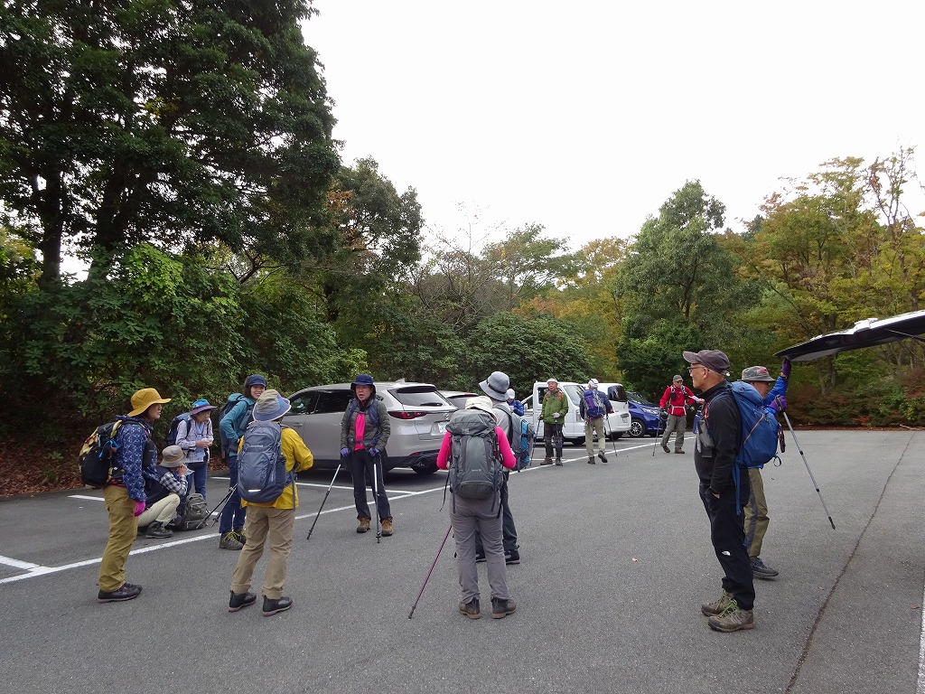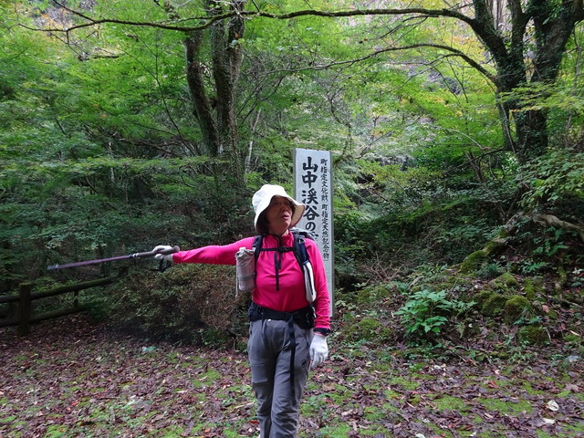 その駐車場、さて出発しましょう。まだ早いし、紅葉が美しいとの評判の山中渓谷を見てからにしようと、